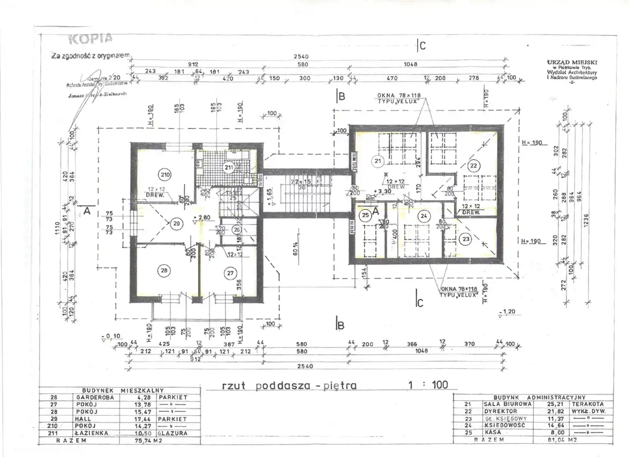 Budynek murowany I biurowy --ok.350 m2(parter +poddasze użytkowe )podpiwniczony .