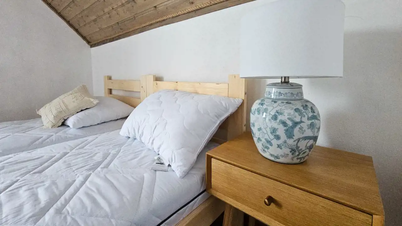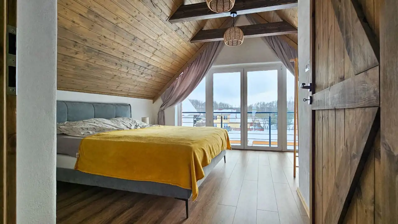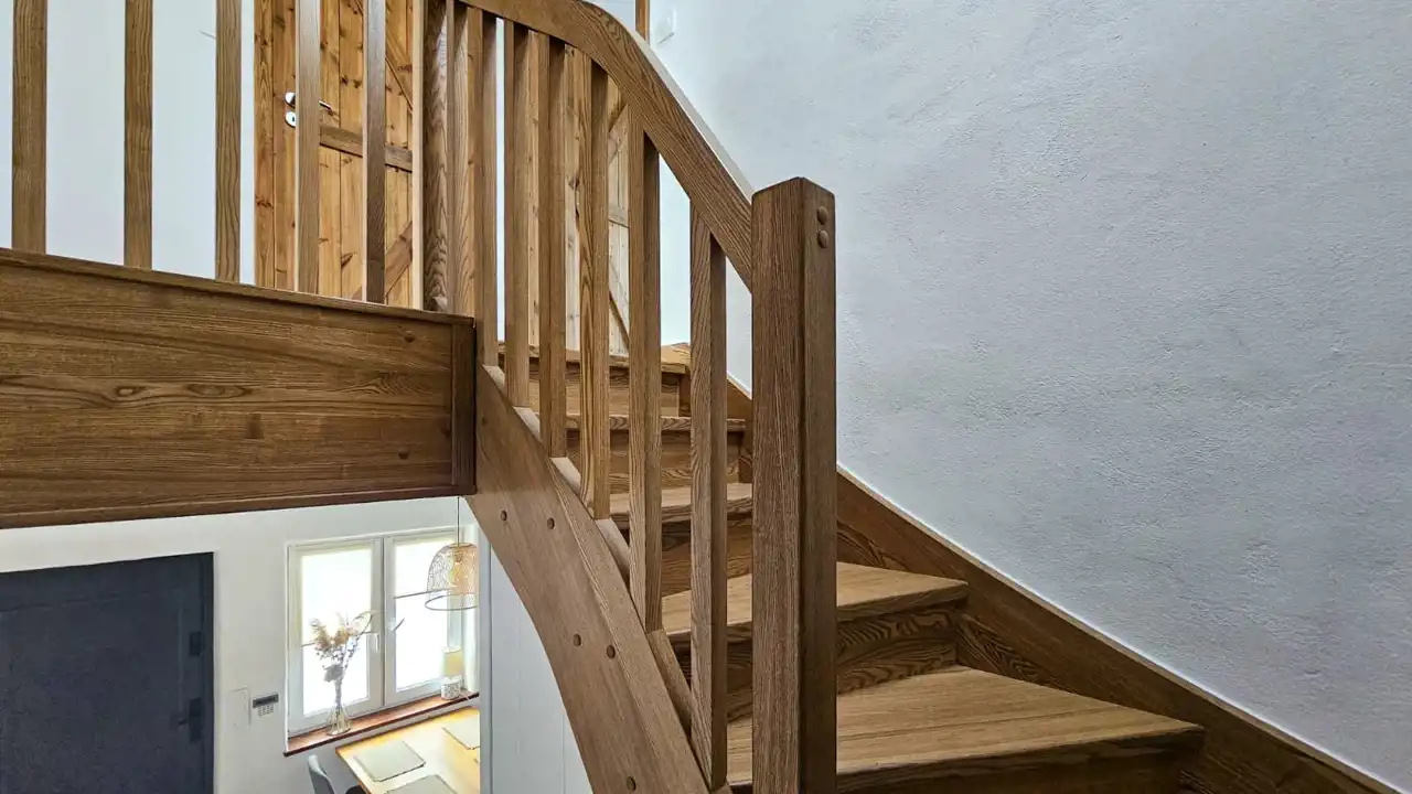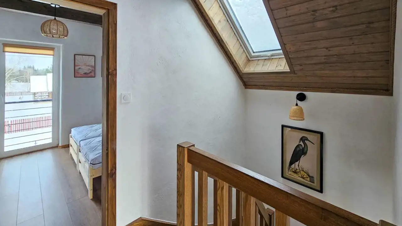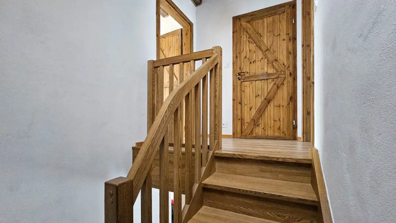 Na poddasze prowadzą solidne, zabudowane schody z drewna jesionowego.