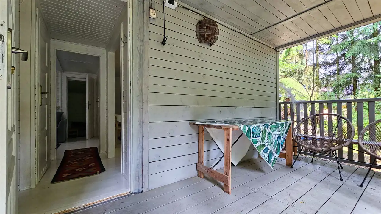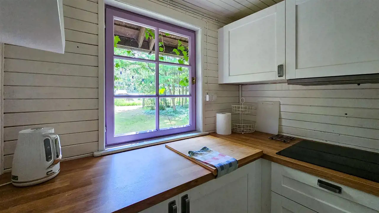 Budynek o konstrukcji drewnianej, całoroczny, ocieplony wełną mineralną w konstrukcji ścian. Na parterze znajduje się weranda, salon z kanapą z funkcją spania, 2 sypialnie, oddzielna kuchnia oraz łazienka z prysznicem i WC. Na poddaszu znajduje się komfortowa sypialnia. Dodatkowo w bryle budynku znajduje się oddzielne pomieszczenie gospodarcze z niezależnym wejściem.
