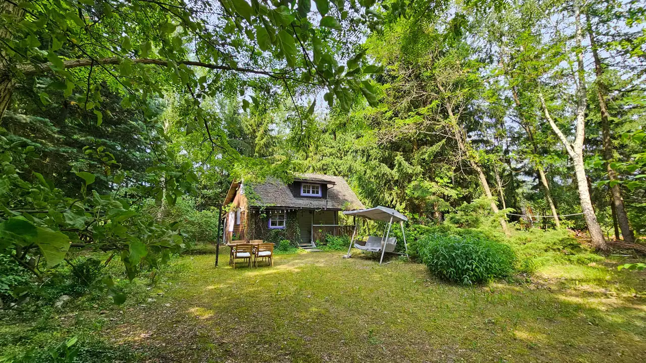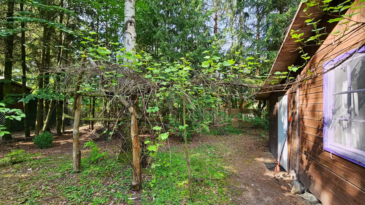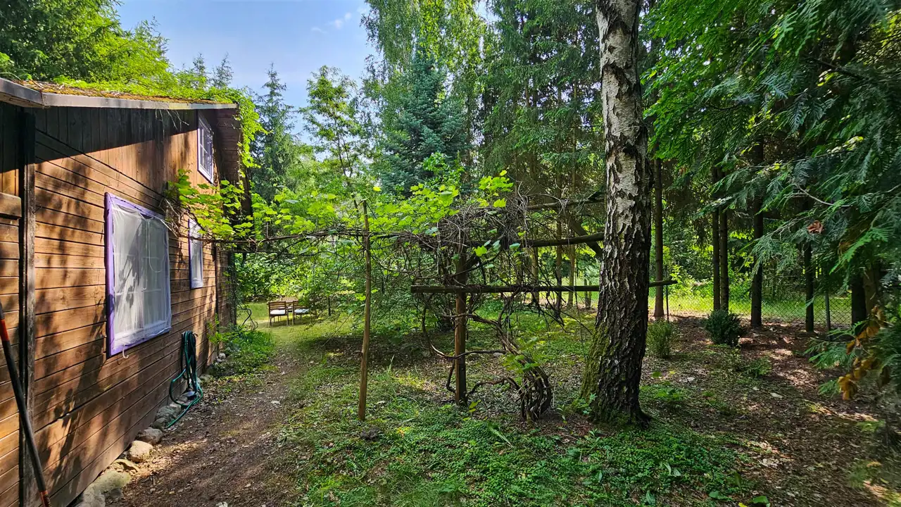 - działka o leśnym charakterze nasadzeń – wysokie drzewa zapewniają cień, prywatność i poczucie kontaktu z naturą