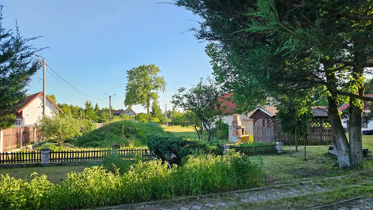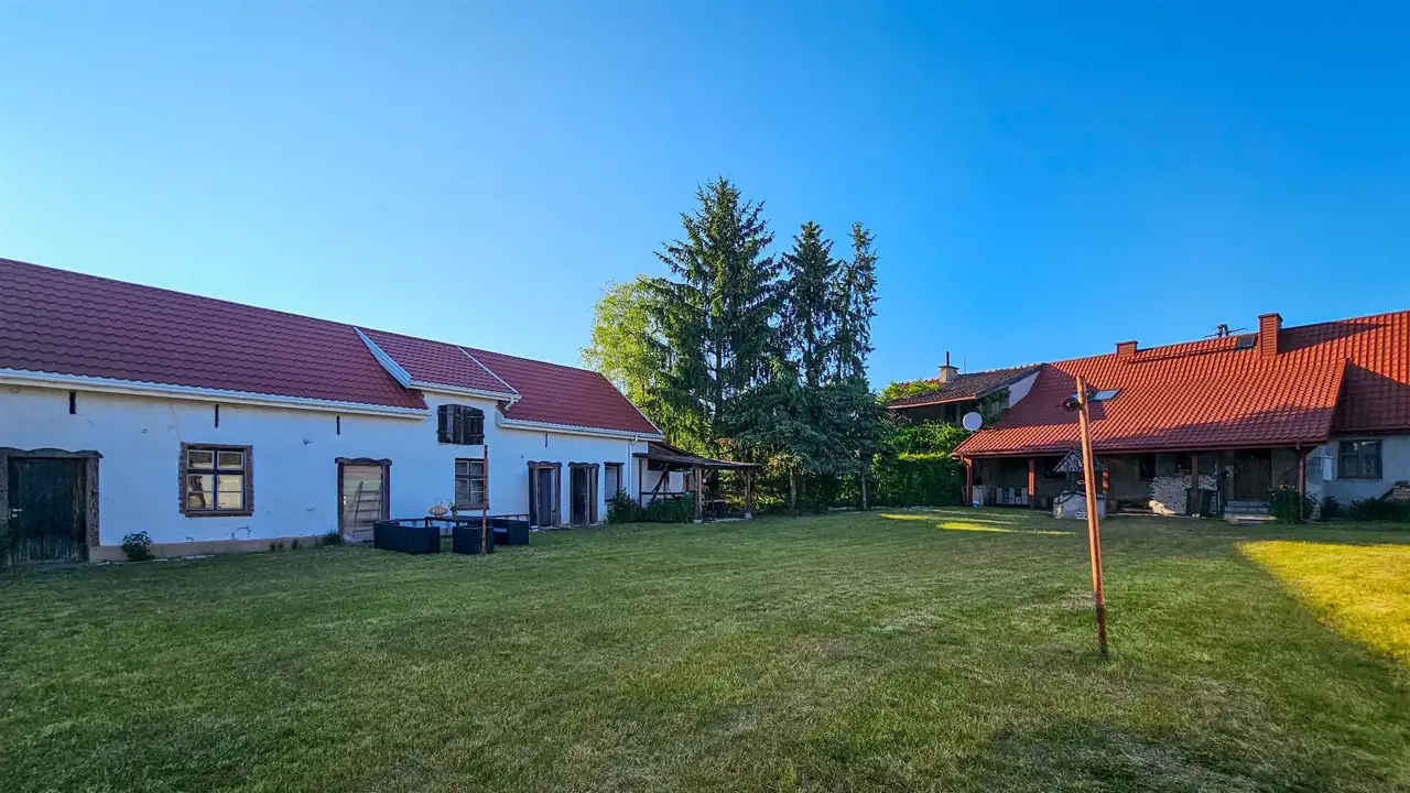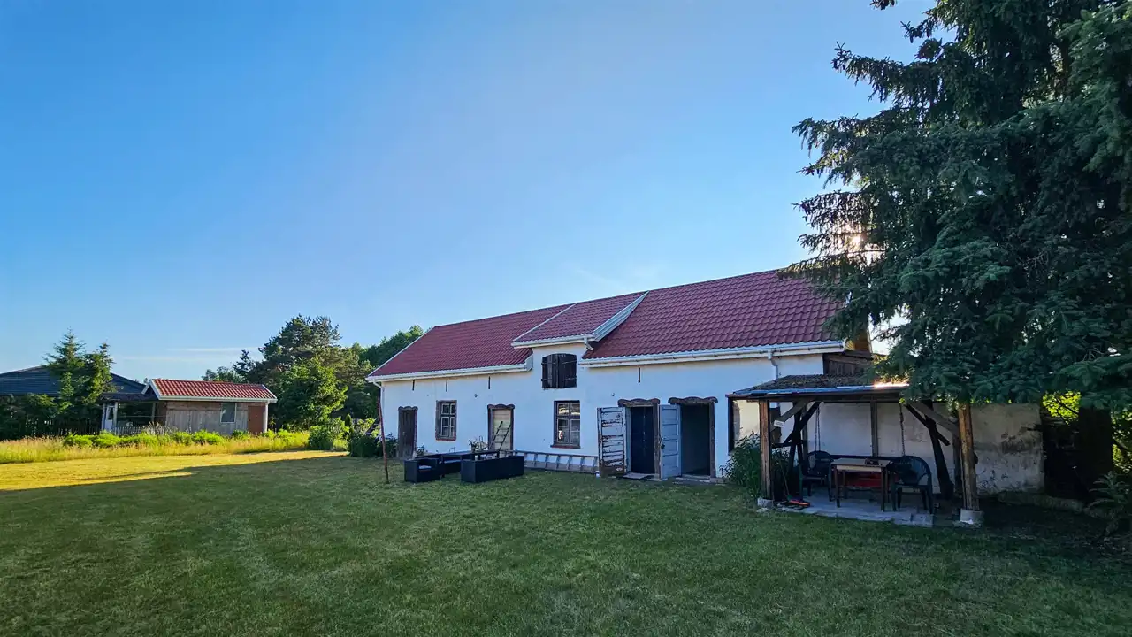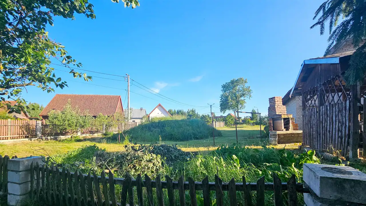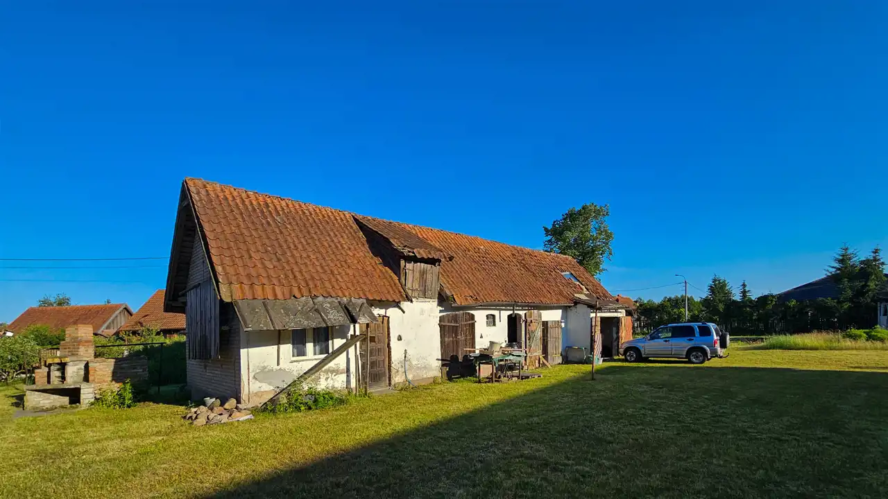 Nieruchomość składa się z budynku mieszkalnego w zabudowie bliźniaczej, dwóch budynków gospodarczych oraz domku letniskowego, usytuowanych na dużej działce o powierzchni 2644 m² (dz. nr 9/21).