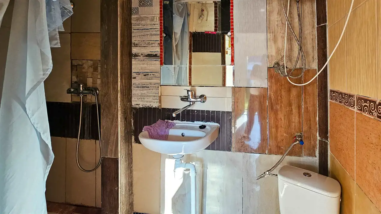 Dom posiada oddzielną, przejściową kuchnię oraz łazienkę. Dodatkowe łazienki znajdują się w obu budynkach gospodarczych. W jednym z nich również druga kuchnia.