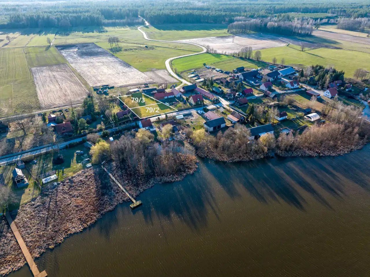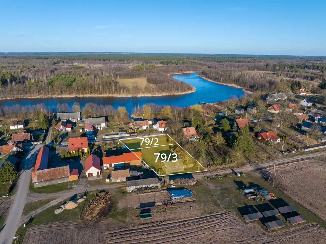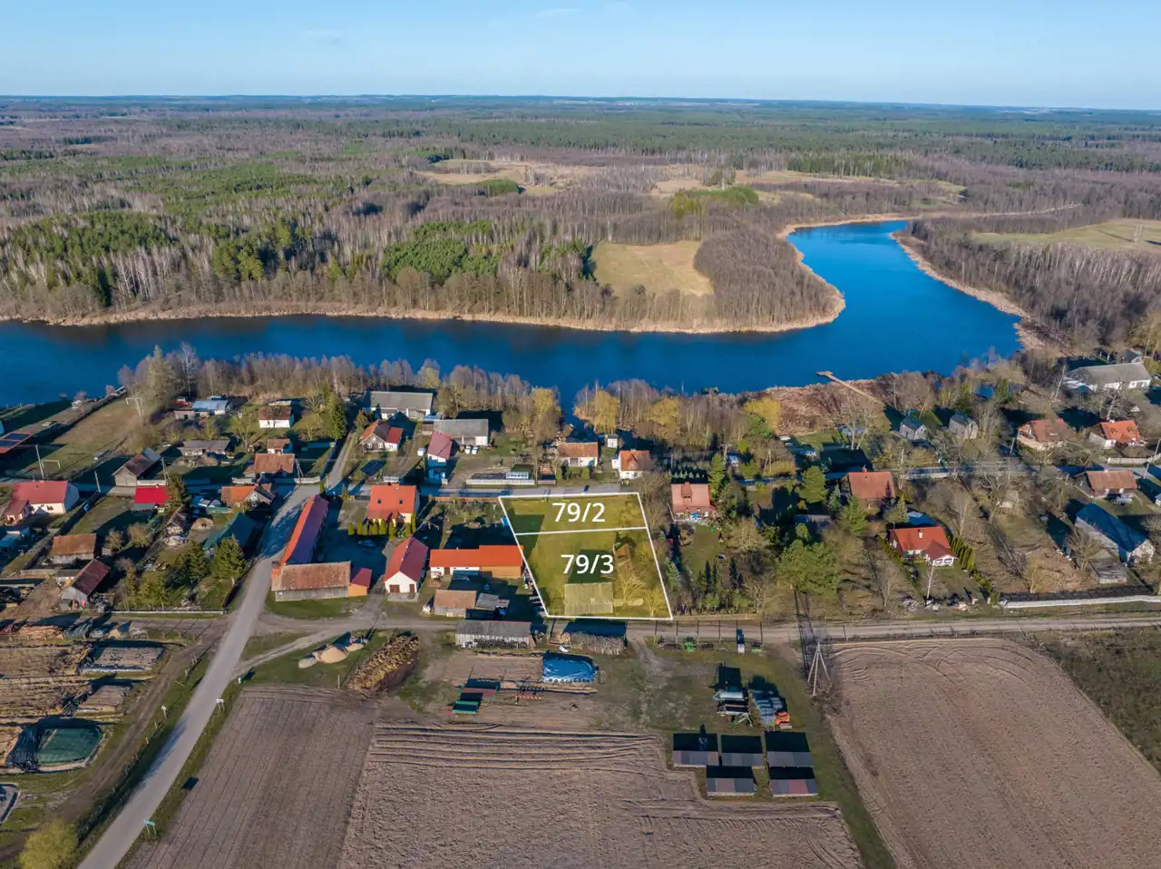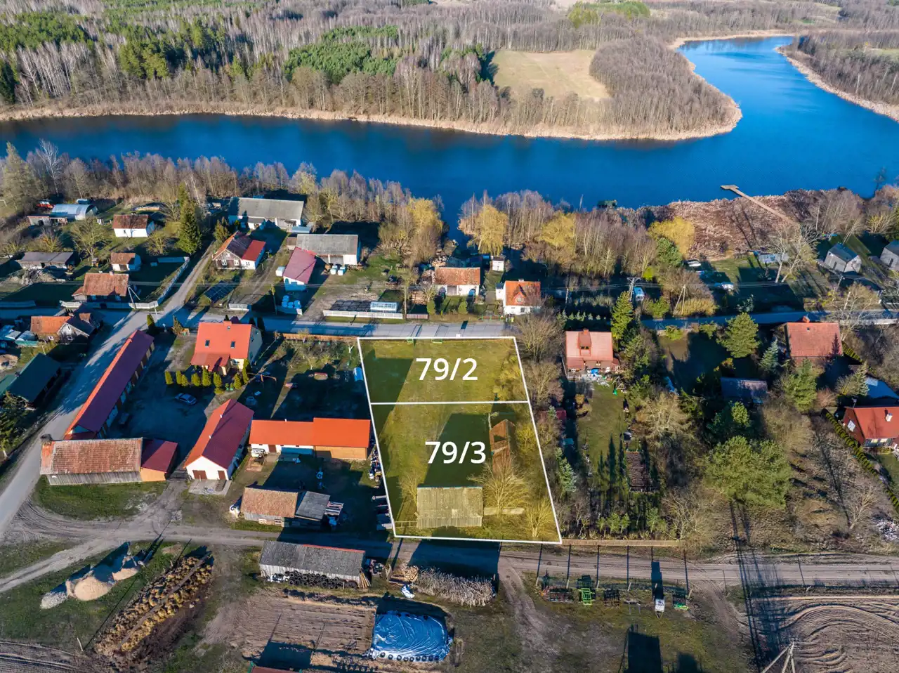 Obie działki posiadają bezpośredni dostęp do drogi publicznej, co zapewnia wygodny dojazd przez cały rok. Teren jest ogrodzony i płaski, co stanowi idealne warunki pod budowę domu rekreacyjnego lub całorocznego – zgodnie z indywidualnymi potrzebami nowego właściciela.