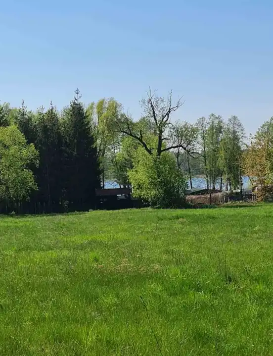 Teren oferowanej nieruchomości lekko wznosi się w kierunku północnym, zapewniając przepiękne widoki na jezioro, powierzchnia jest równa, porośnięta systematycznie koszoną trawą.
