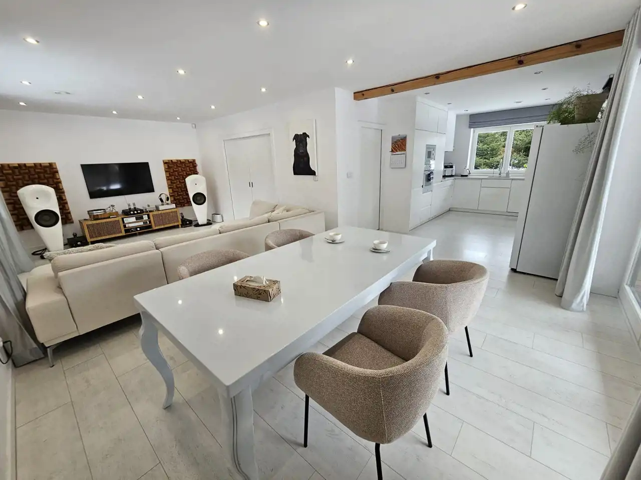 przestronny salon z jadalnią otwarty na kuchnię