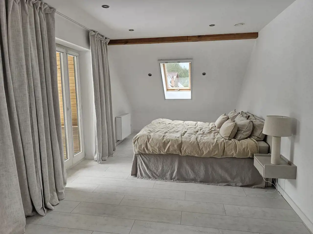 sypialnia z bezpośrednim wyjściem na taras