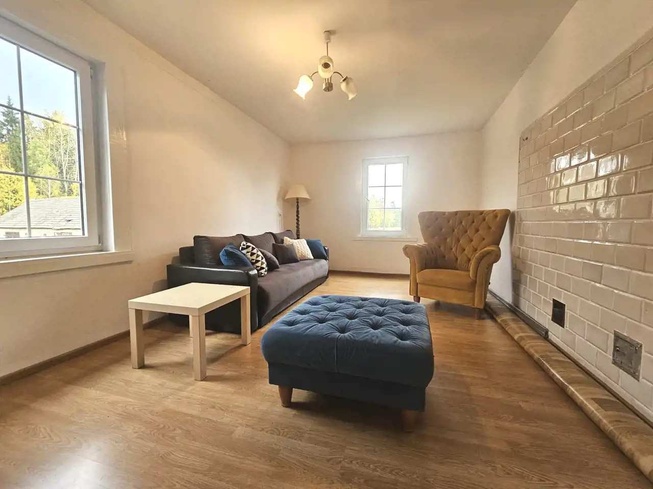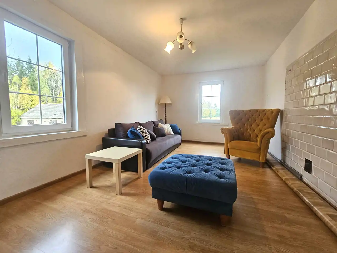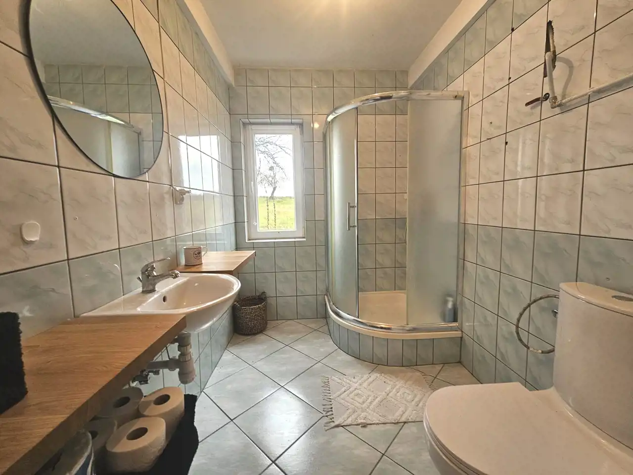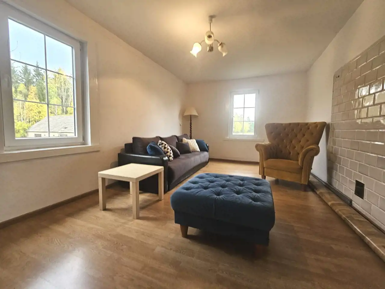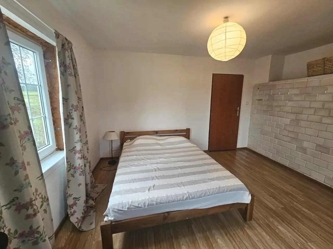 Składa się z kuchni z piecem kaflowym, trzech pokoi, łazienki, przedpokoju oraz tarasu w trakcie wykończenia.