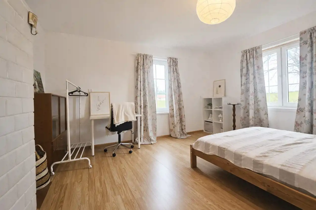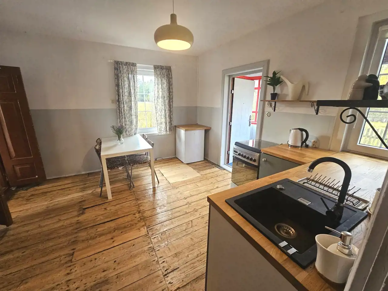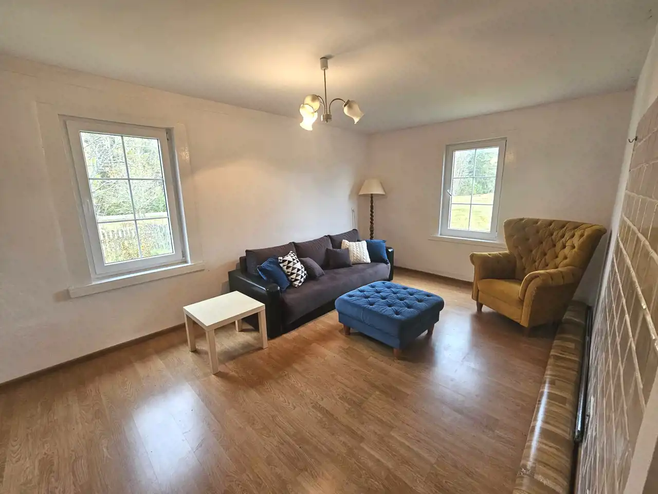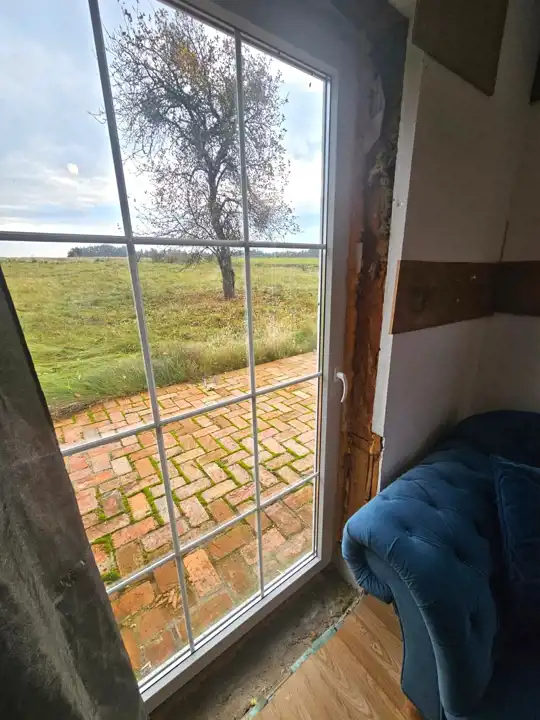 Dach pokryty blachą w bardzo dobrym stanie, nowe okna (2023), podłogi z paneli i drewna.