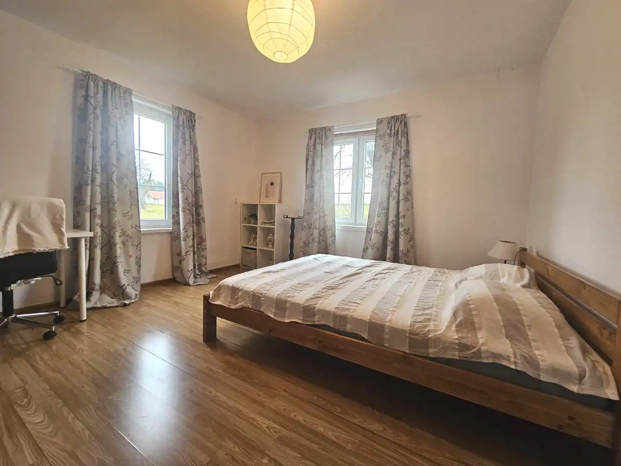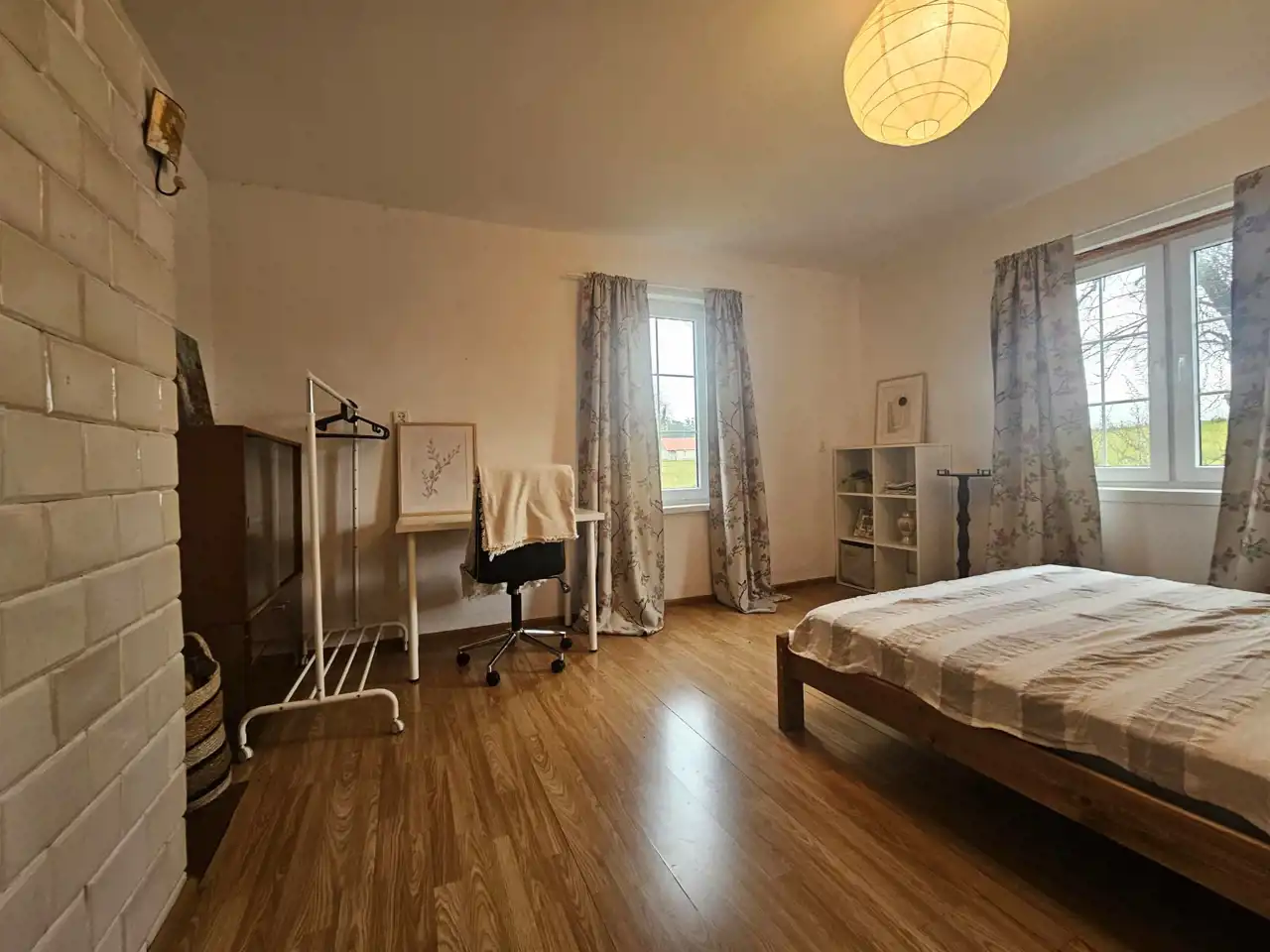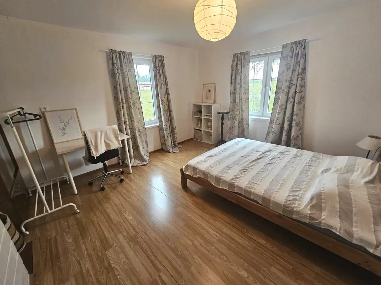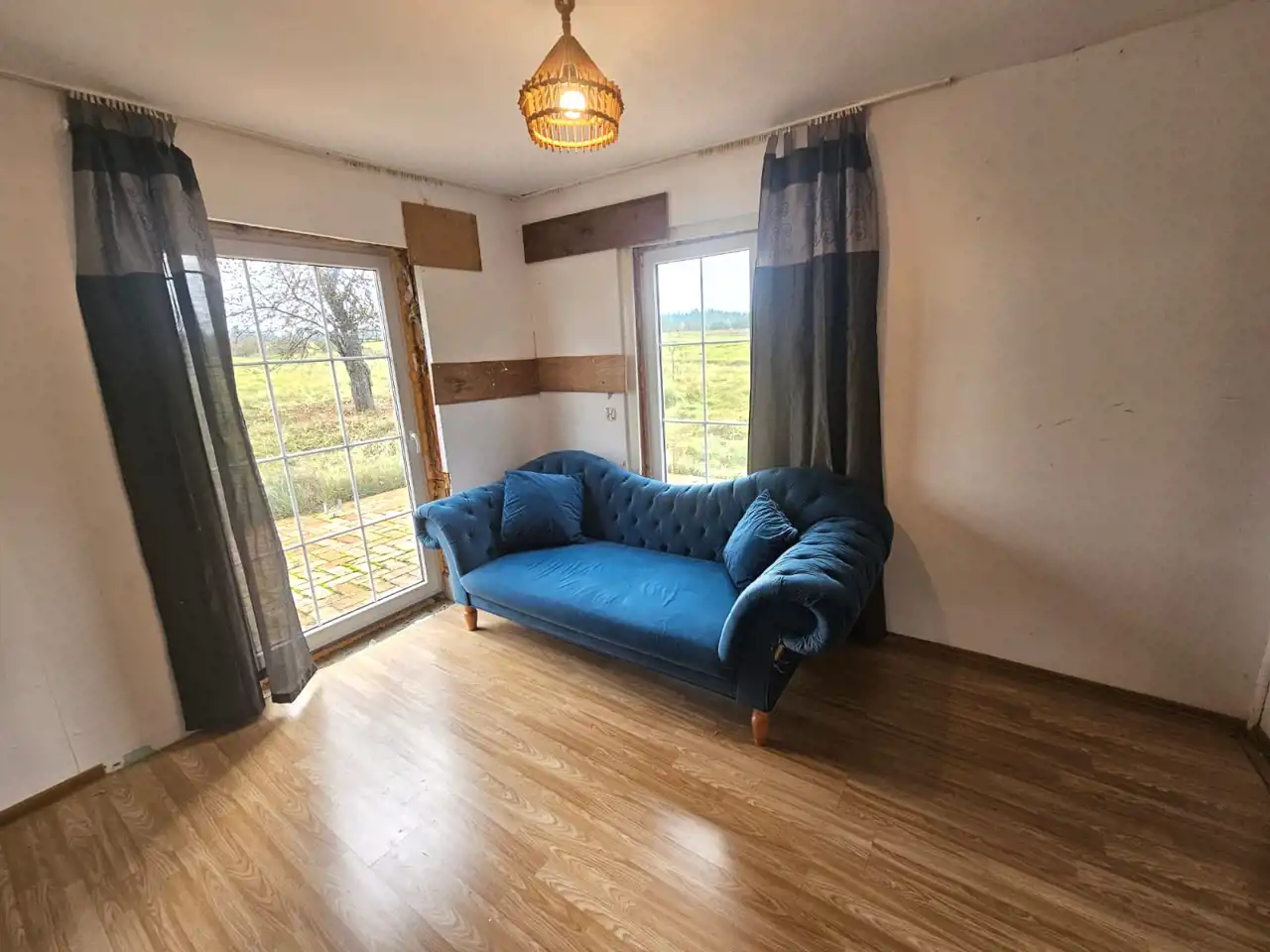 Dach pokryty blachą w bardzo dobrym stanie, nowe okna (2023), podłogi z paneli i drewna.