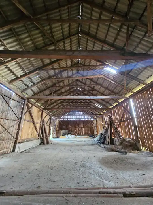 W skład nieruchomości wchodzi dom mieszkalny o powierzchni ok. 70 m², zabudowania gospodarcze (stodoła, chlewnia i inne – łącznie ok. 350 m²) oraz działka o powierzchni 0,45 ha (4500 m²).