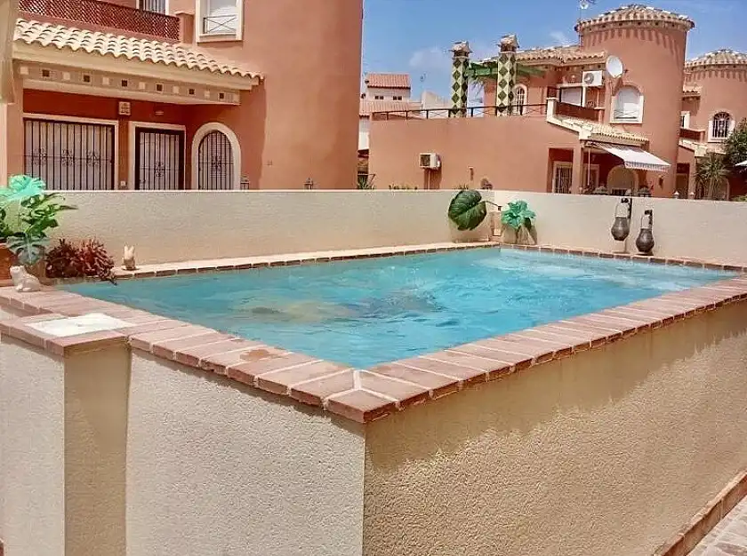 Wolnostojąca willa z 3 sypialniami w Playa Flamenca. Przestronna niezależna willa z trzema sypialniami i dwiema łazienkami w Playa Flamenca, Orihuela Costa. Dom znajduje się 13 minut spacerem od plaży i kilka minut spacerem od supermarketów, sklepów, kawiarni i restauracji. Willa posiada duży ogród i prywatny basen i jest sprzedawana jako częściowo umeblowana i wyposażona.
