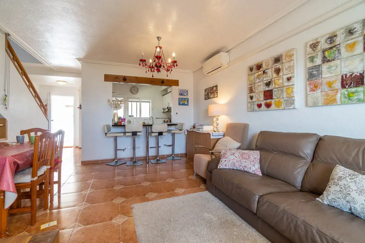 Dom w zabudowie szeregowej, będący częścią zamkniętego osiedla z basenem, usytuowany bardzo dobrze, zaledwie 500m od plaży, centrum handlowego La Zenia Boulevard, 300m od sobotniego, ulicznego ryneczku.