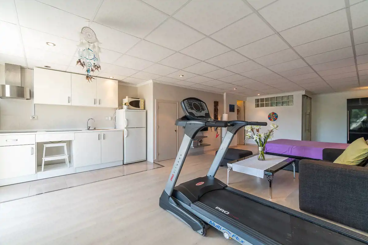 Rozplanowany na trzech poziomach, z wykorzystaniem poziomu piwnicy na samowystarczalne studio, które może być oddzielnie wynajmowane.