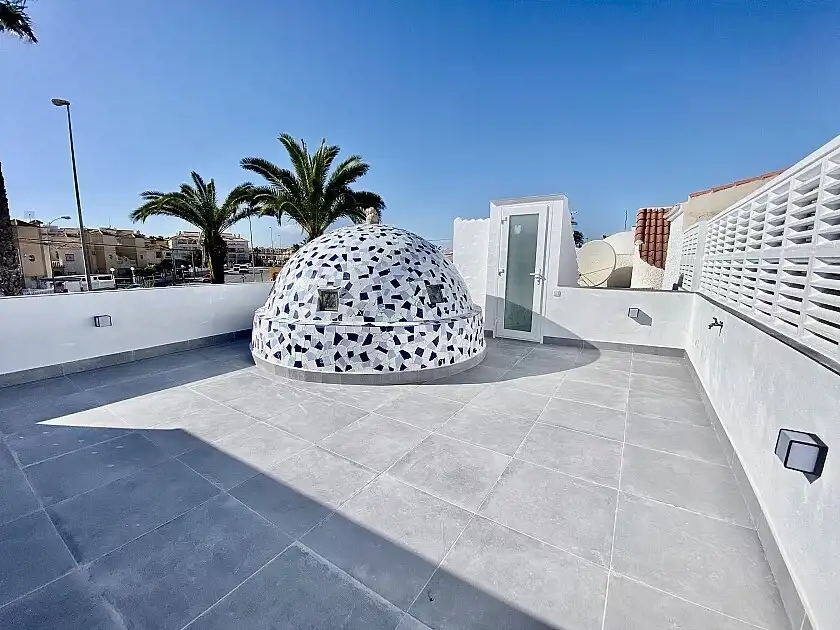 Całkowicie odnowiony dom z 2 sypialniami i 1 łazienką w Playa Flamenca. Dom wychodzący na południe posiada słoneczne solarium i klimatyzację w głównej sypialni oraz salonie/kuchni. Dom został niedawno odnowiony. Znajduje się na zamkniętym osiedlu, 5 minut jazdy samochodem od plaż i zatoczek Orihuela Costa i 25 minut spacerem od centrum handlowego La Zenia Boulevard. Dom położony jest niecałe 10 minut jazdy samochodem od kilku pól golfowych w okolicy i 15 minut jazdy samochodem od miasta Torrevieja.