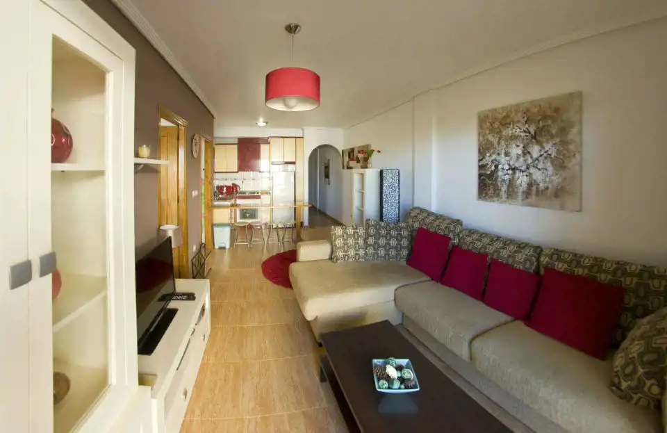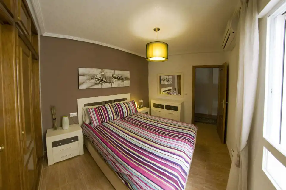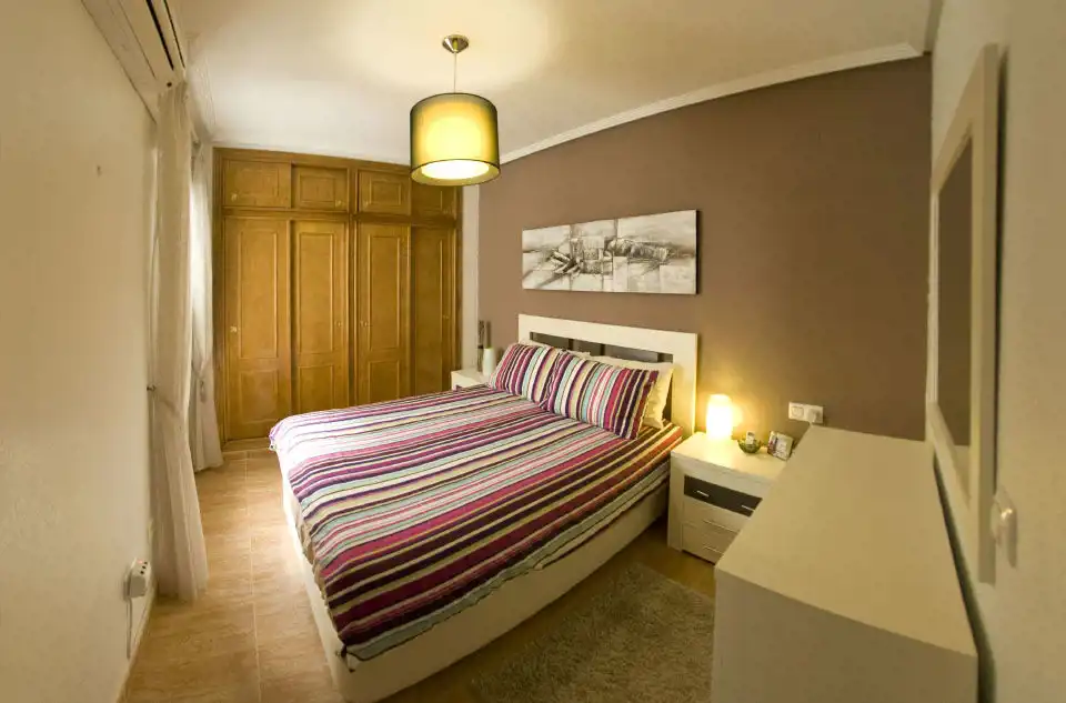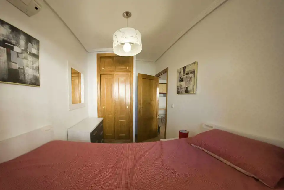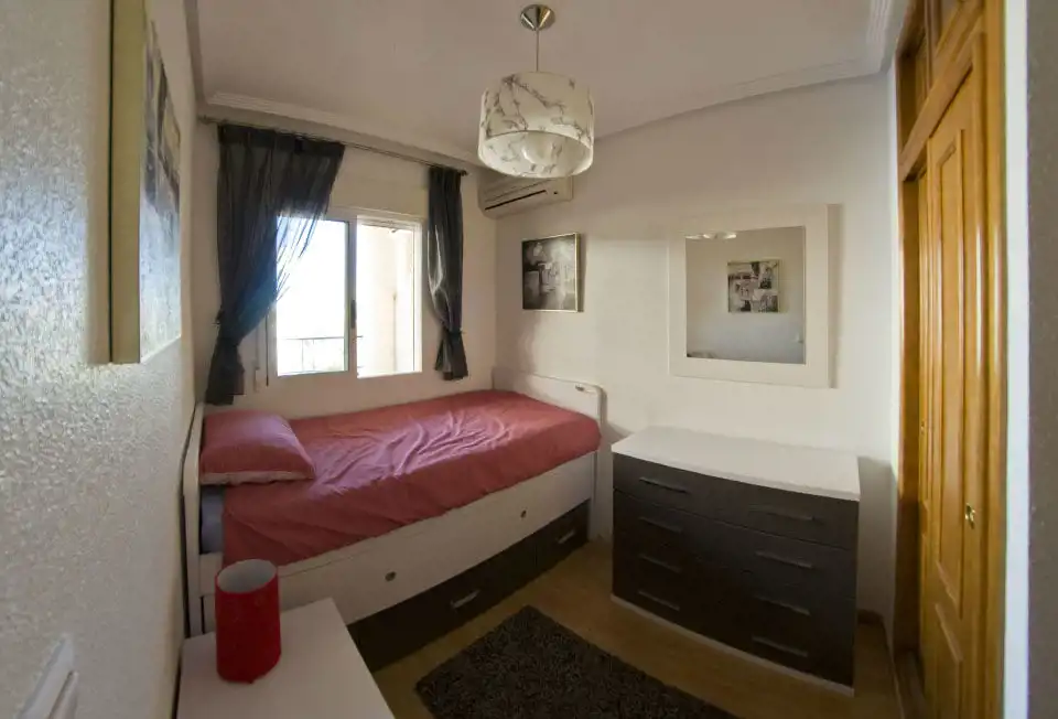 Zapraszamy do apartamentu na turystycznym terenie Orihuela Costa. Mieści się na II piętrze (w budynku z windą), zaledwie 800 m od morza, na osiedlu z basenem. Dysponuje dwiema sypialniami z 4 miejscami do spania oraz dodatkowo posiada w salonie rozkładaną sofę. W apartamecie może spać do 6 osób.