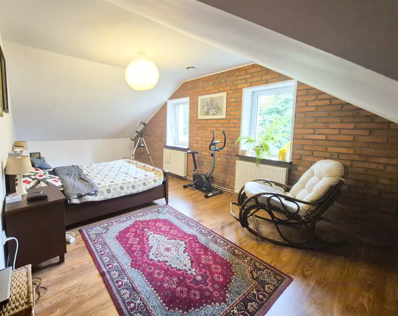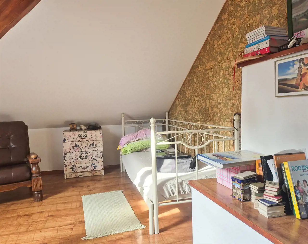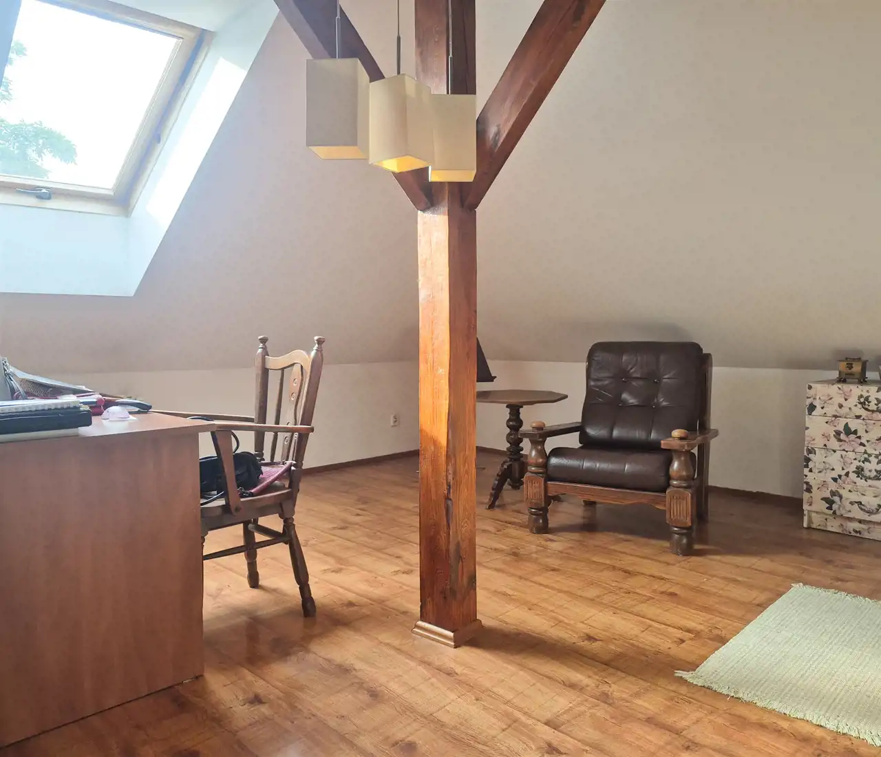 Charakter tego domu oddaje drewniana podłoga na parterze, którą właściciele zachowali do dziś. Wyeksponowane zostały drewniane belki i słupy na poddaszu, a także uwypuklono ceglane ściany po wschodniej i zachodniej stronie domu. Nieruchomość zdecydowanie polecana dla osób poszukujących klimatycznego miejsca, unikalnego charakteru i duszy. Miejsce doskonale sprawdzi się też dla osób poszukujących kontaktu z naturą. W bliskiej odległości obszar objęty ochroną Natura 2000, a także sieć ścieżek rowerowych i pieszych.