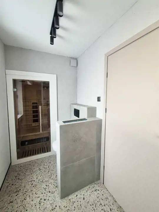 - łazienka z kabiną prysznicową, wolnostojącą wanną, wc oraz sauną.