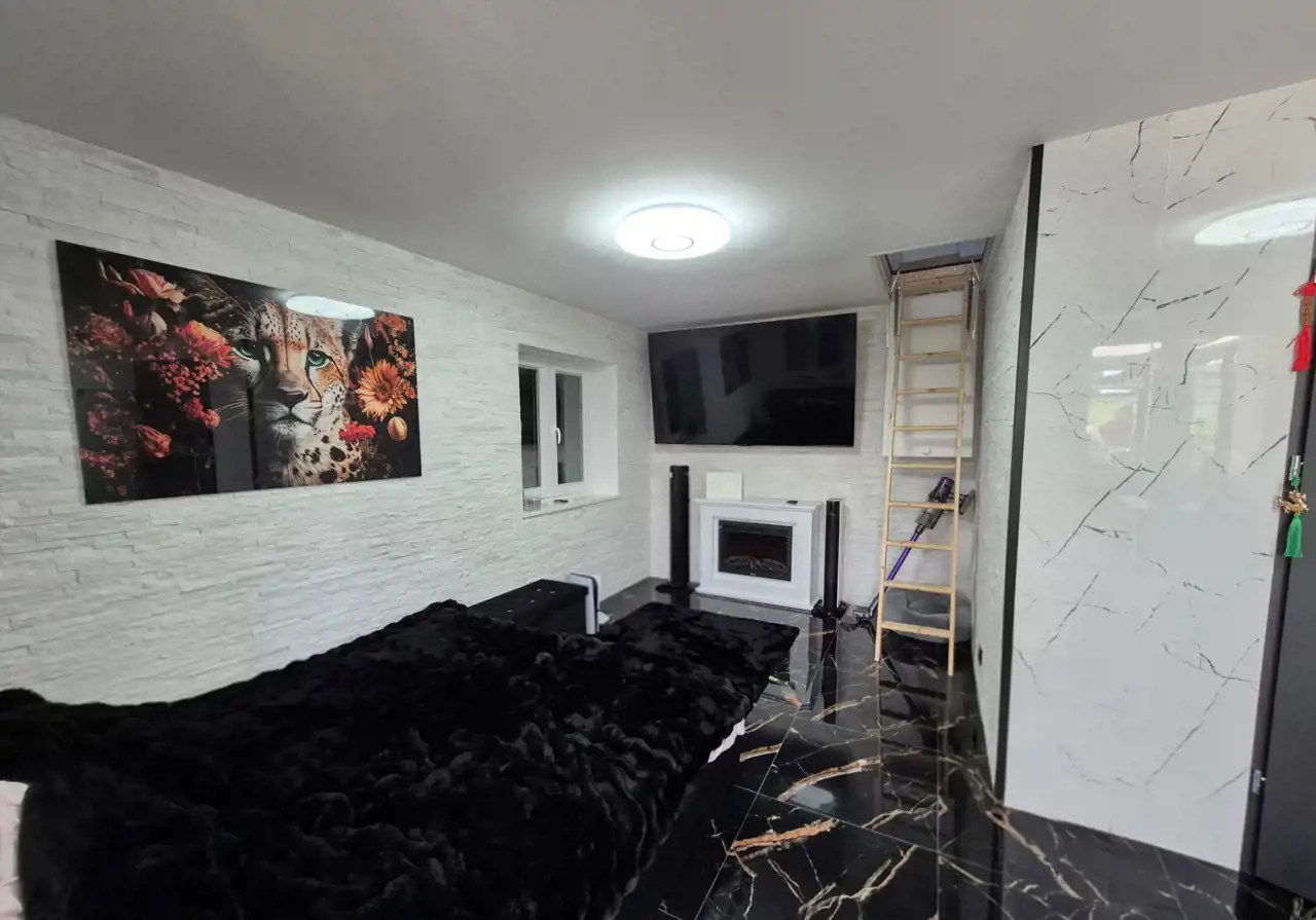 Wnętrze wyposażono tak, by spełniało wszystkie potrzeby – znajdziesz tu przestrzeń do relaksu, oglądania filmów na dużym ekranie, a także miejsce do wspólnych spotkań z rodziną i przyjaciółmi