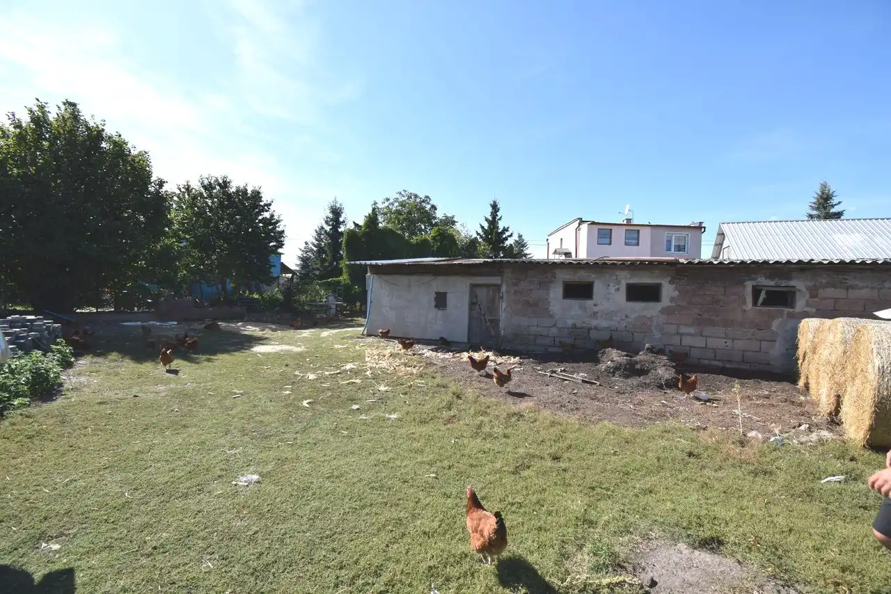 Działka zabudowana budynkiem gospodarczym, którego formalny sposób użytkowania zmieniono na mieszkalny. Budynek wymaga rozbudowy.