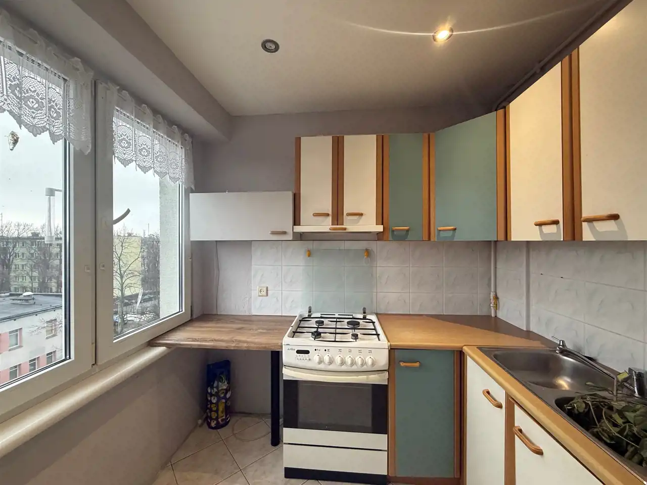 Mieszkanie wymaga remontu lub odświeżenia dla mniej wymagających.