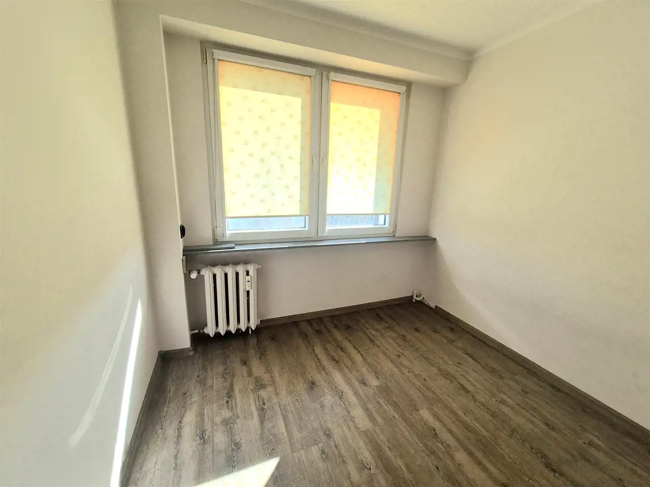✅ Na podłogach panele w ciepłym odcieniu drewna.