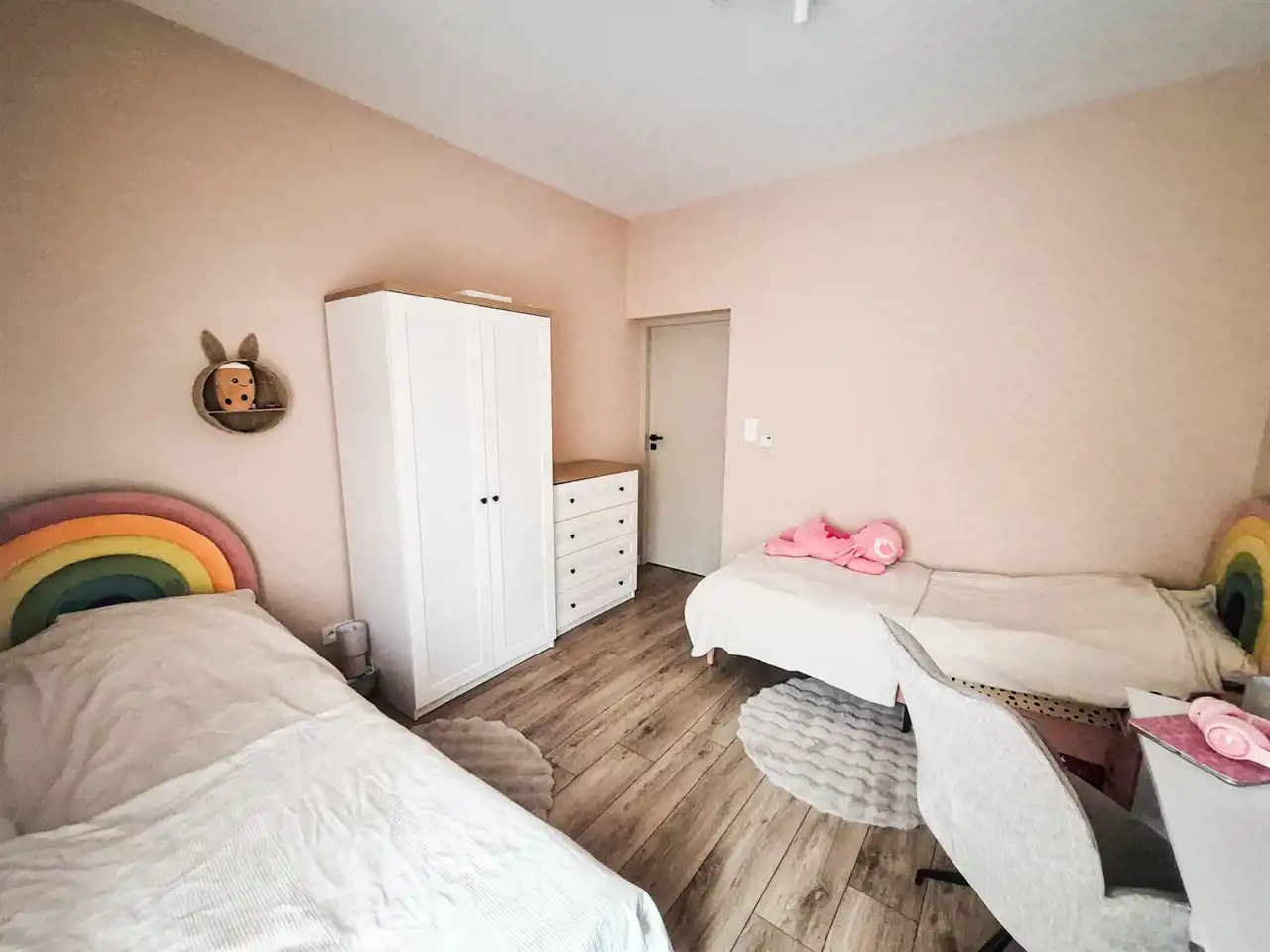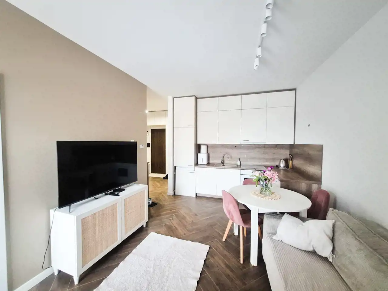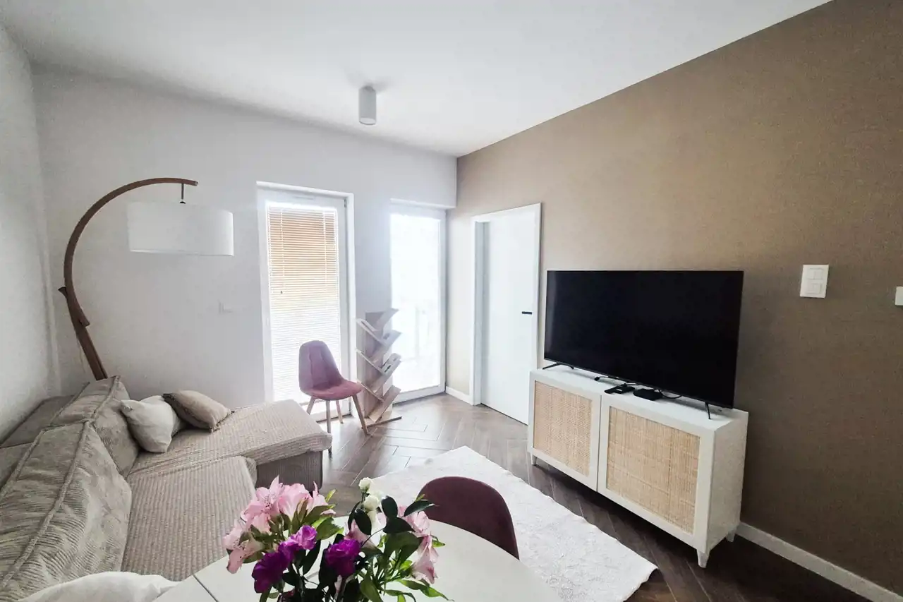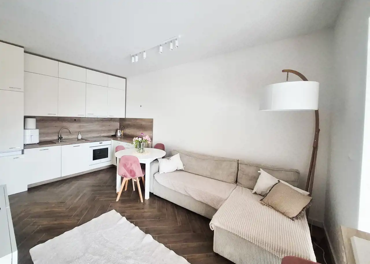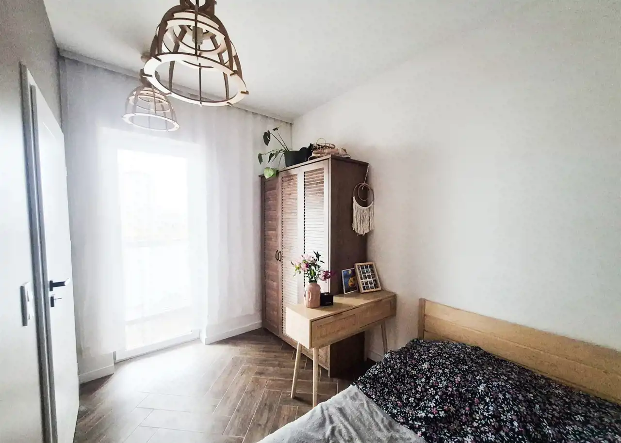 Mieszkanie o powierzchni blisko 60 m², położone jest na parterze budynku z 2018 roku. W pobliżu znajdują się sklepy, punkty usługowe i edukacyjne, a komunikacja miejska pozwala na sprawne dotarcie do innych części miasta. Osiedle jest zadbane, zamknięte i monitorowane, co zapewnia poczucie bezpieczeństwa mieszkańcom.