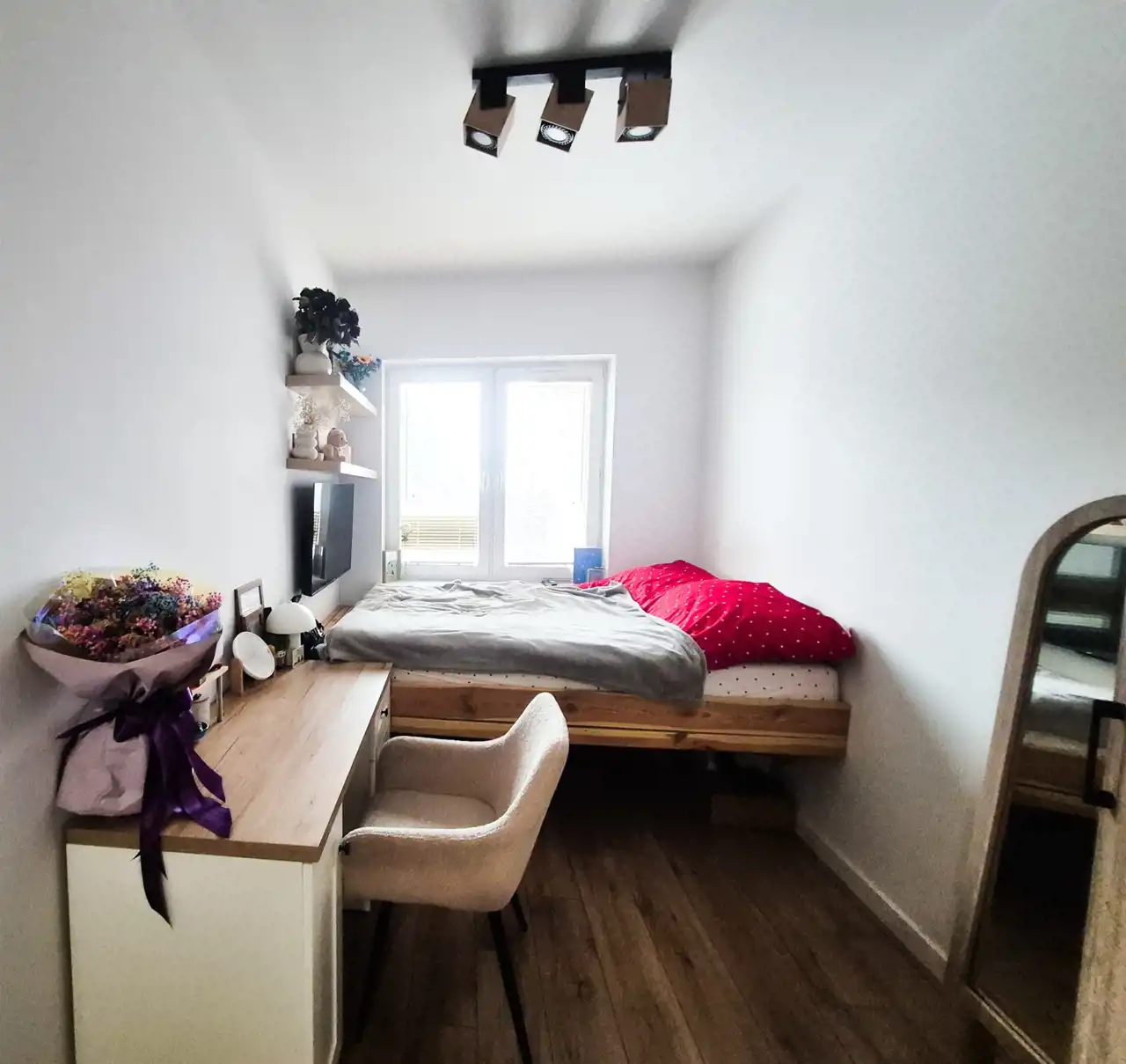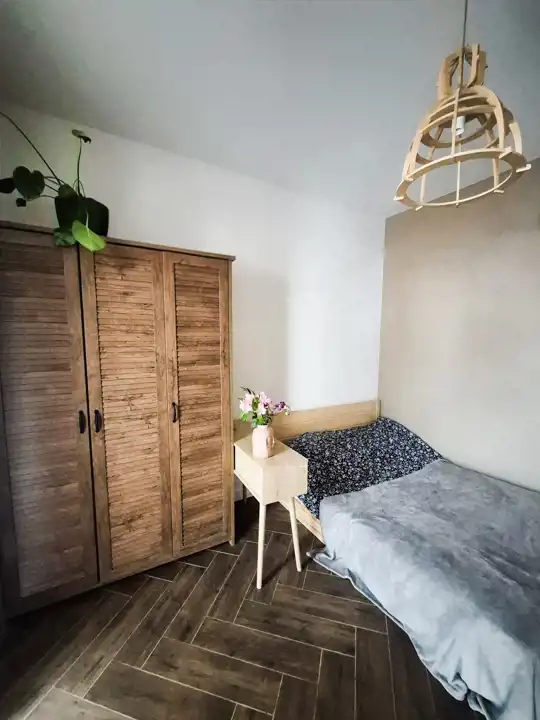 - sypialnia wydzielona z salonu z wyjściem na balkon,