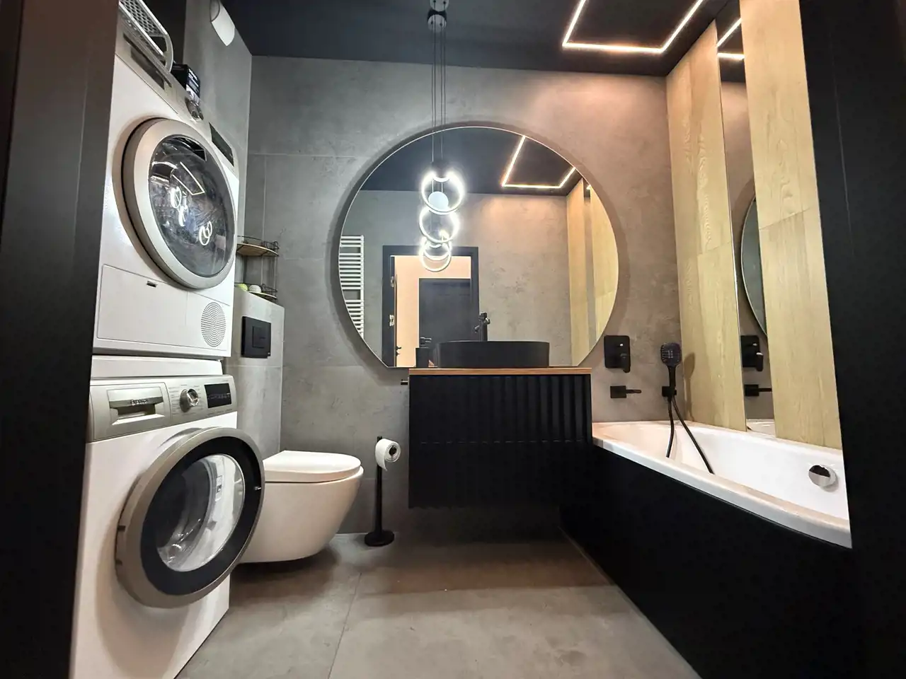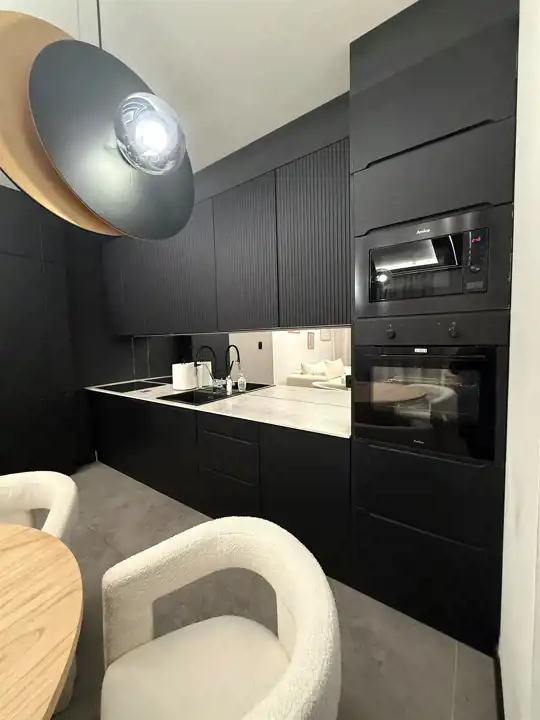 Mieszkanie o wysokim standardzie wykończenia, wyposażone w liczne zabudowy meblowe oraz sprzęt AGD ( lodówka, indukcja, zmywarka, piekarnik, mikrofala, pralka, suszarka).