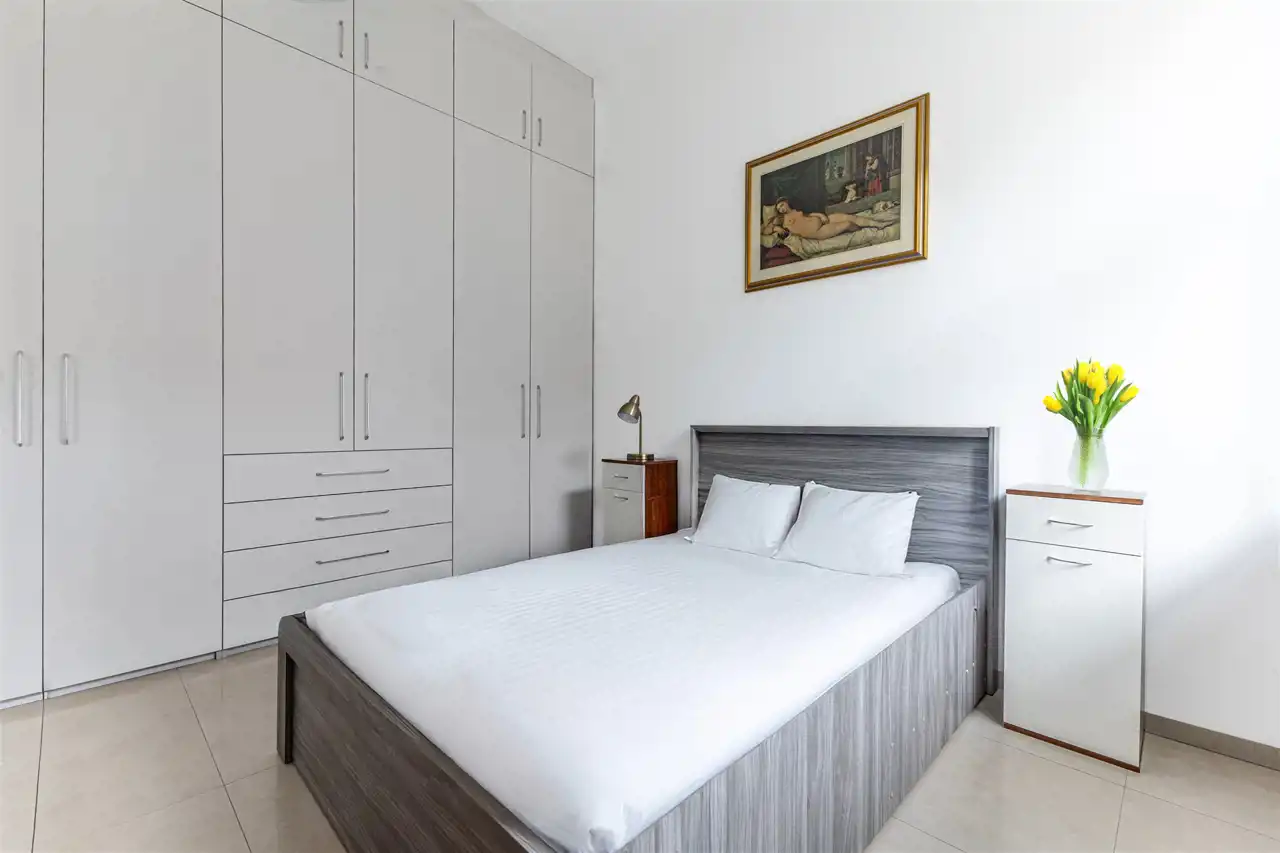 - Komfortowa sypialnia z dużą szafą w zabudowie;