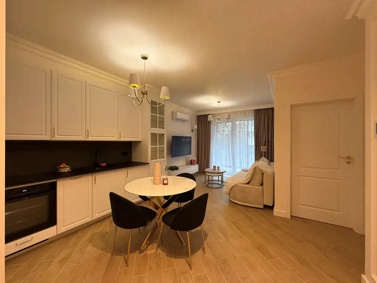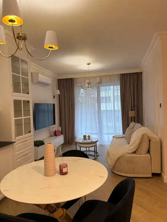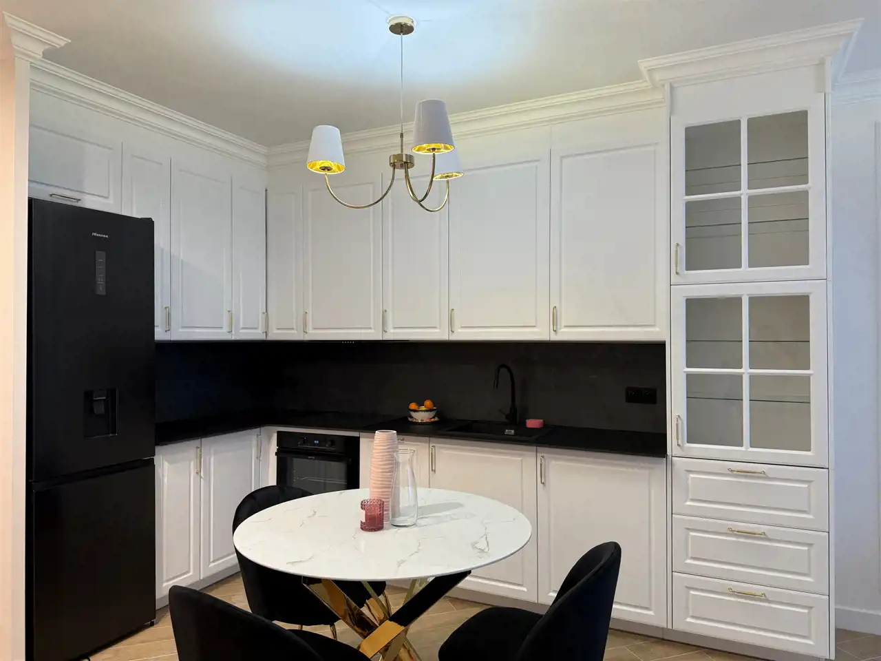 Mieszkanie urządzone nowocześnie i elegancko z użyciem wysokiej jakości materiałów.