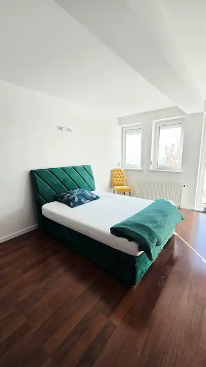 Składa się z wygodnego salonu z aneksem kuchennym i jadalnią, 3 sypialni, 2 łazienki z wc, przedpokoju.