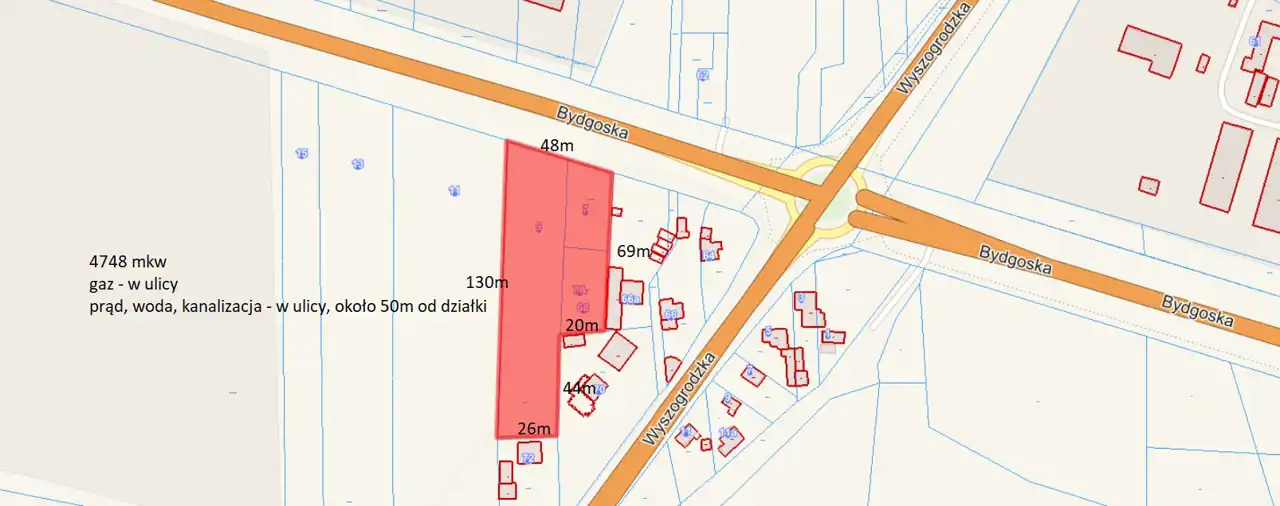 - Media Woda: w ulicy; Kanalizacja: w ulicy; Prąd: w ulicy; Gaz: w ulicy