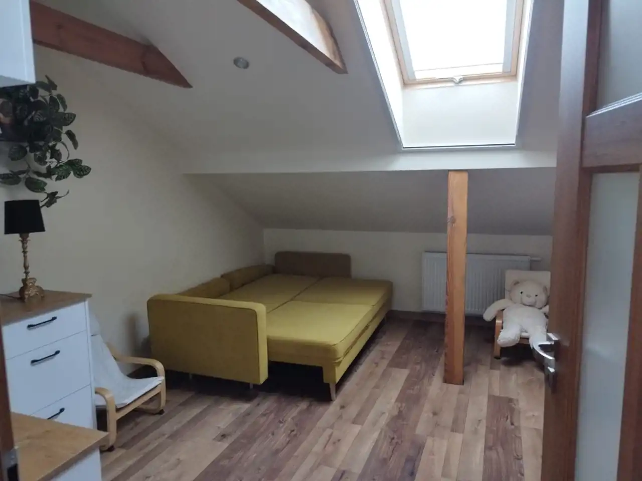 Mieszkanie na poddaszu z oddzielnym wejściem /100 m2/ można zaaranżować na dodatkowe pokoje i uzyskać więcej miejsc noclegowych.