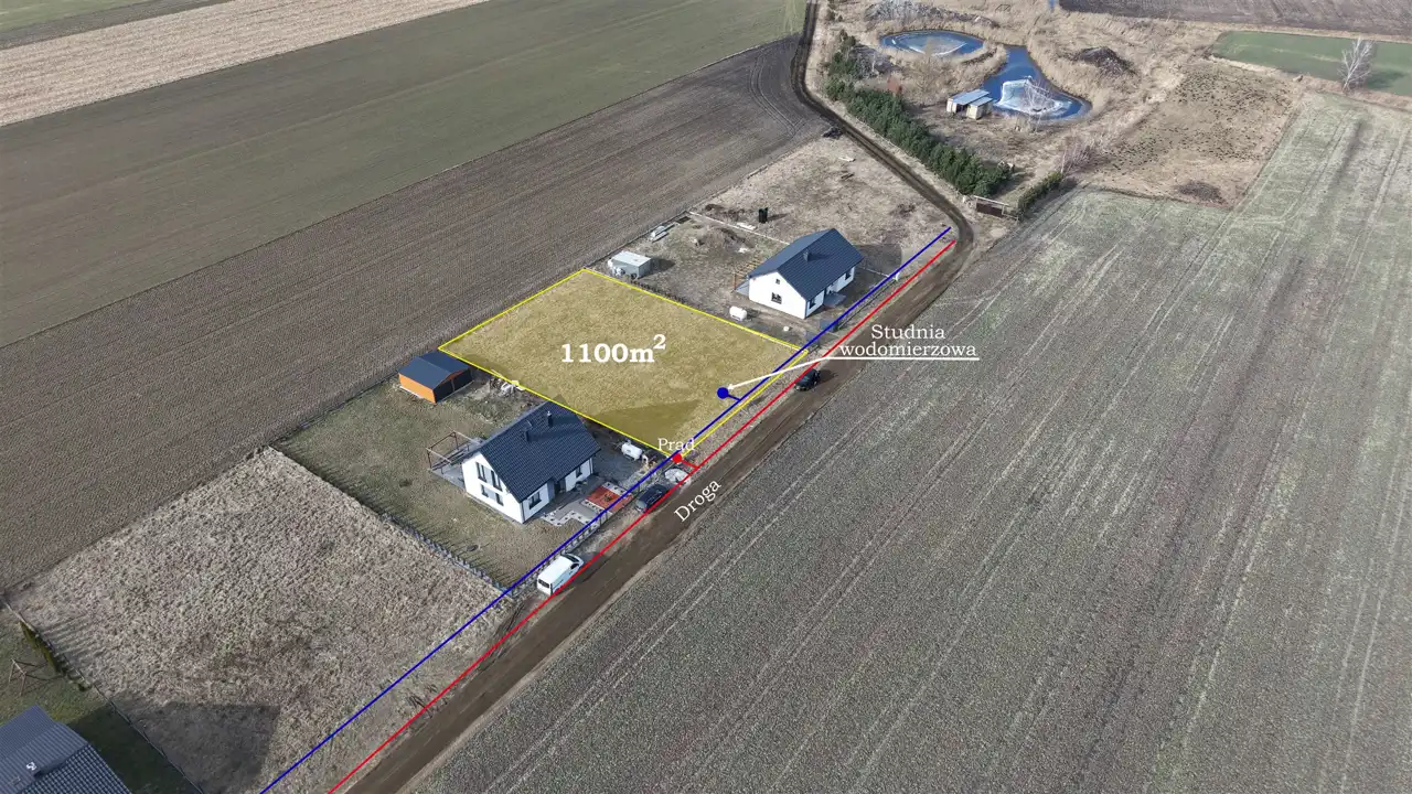 - Media Woda: tak; Kanalizacja: brak; Prąd: w ulicy