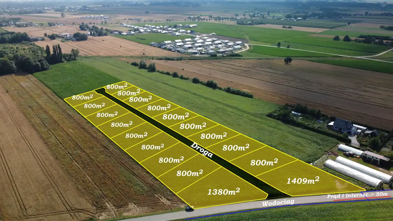 W naszej ofercie posiadamy działkę o powierzchni 800 m2.
