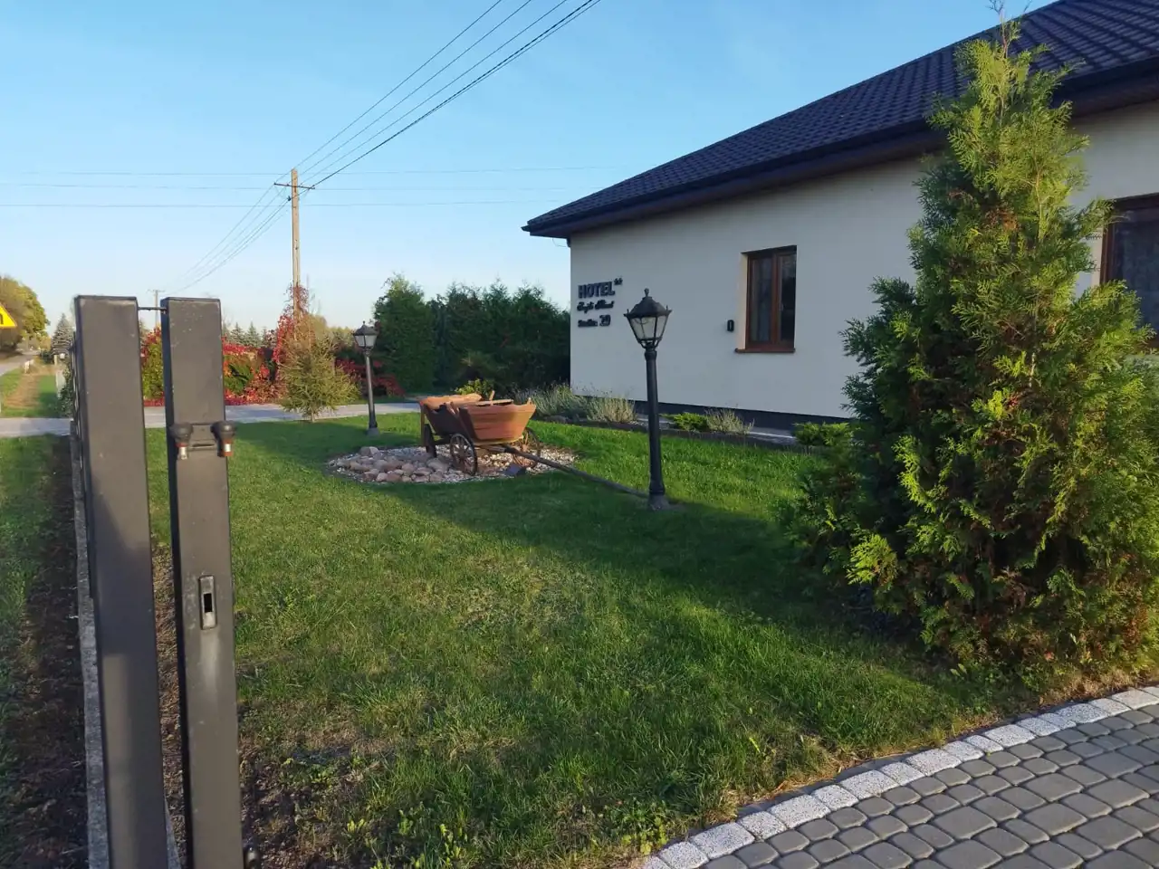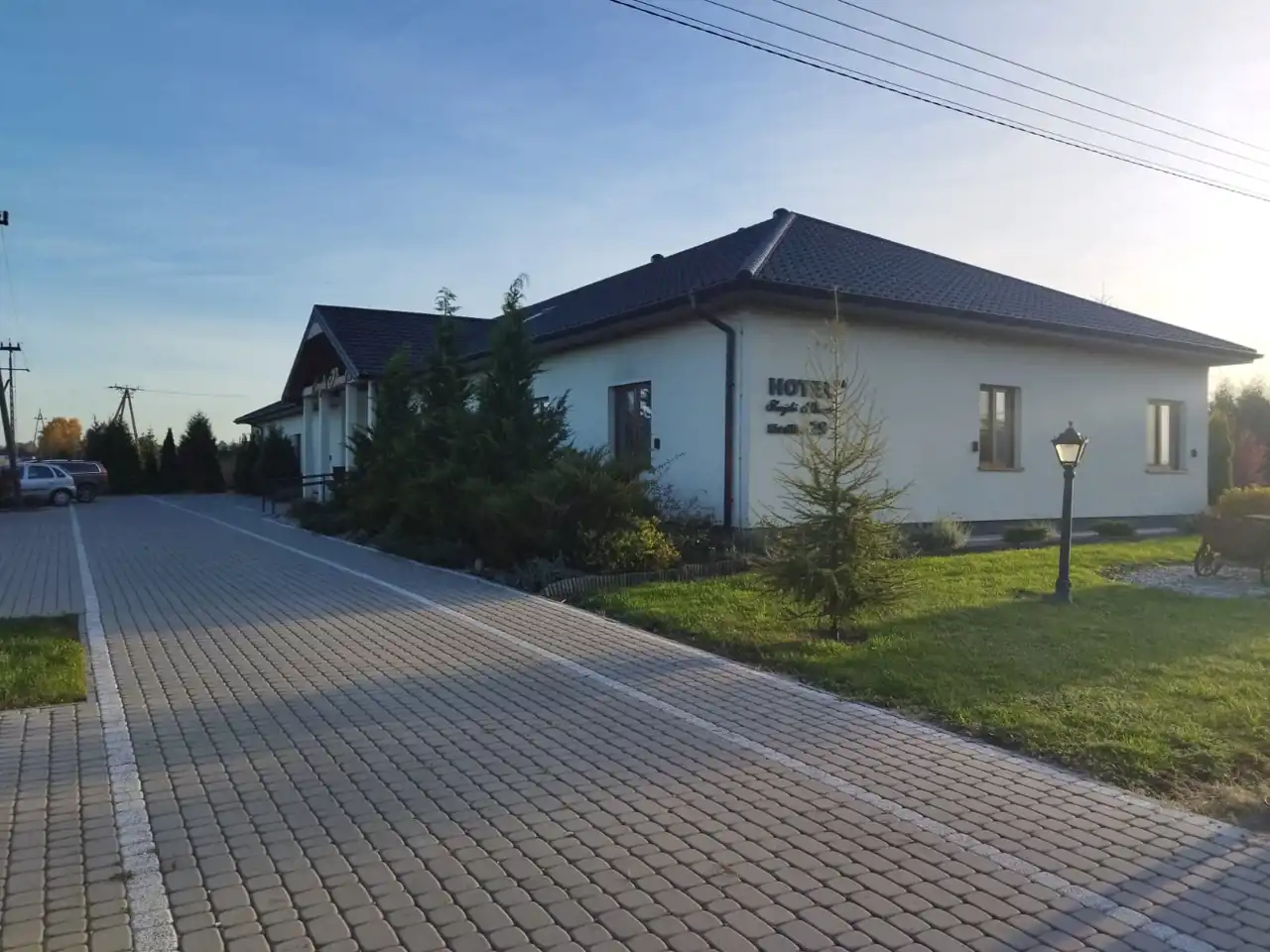 Hotel znajduje się przy asfaltowe drodze , w okolicy domków jednorodzinnych.