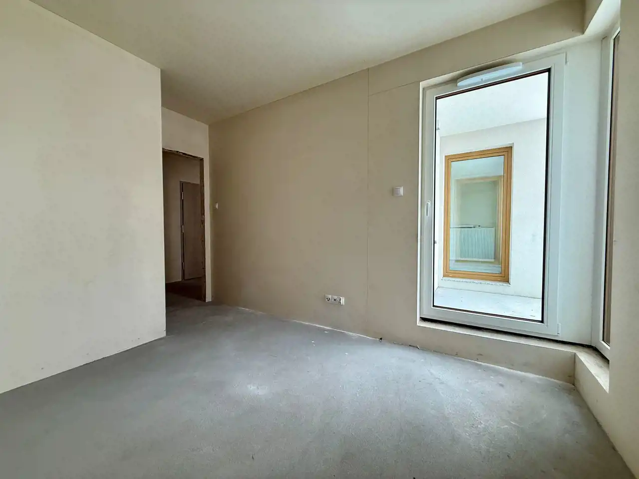 sypialnia z wyjściem na balkon