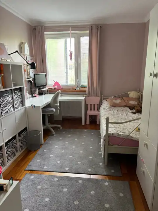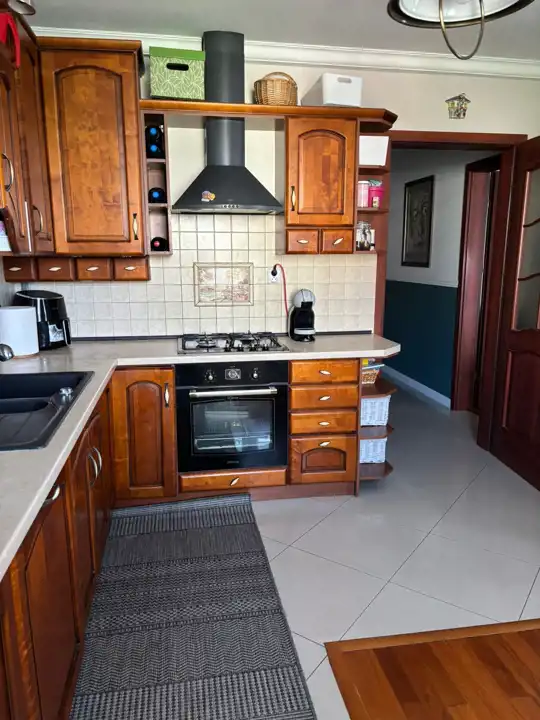 Wykończenie: pokoje deska berlinecka drewno egzotyczne Badi, stan bardzo dobry, przedpokój i część kuchni gres szkliwiony, duże kafle. W kuchni zmywarka, płyta gazowa, piekarnik, zlew granitowy, lodówko zamrażarka.