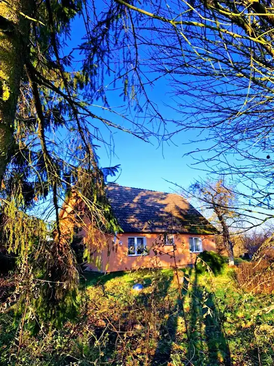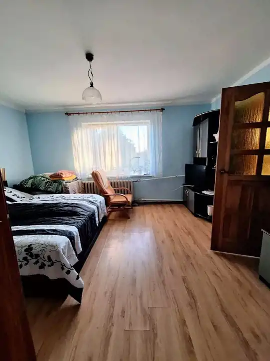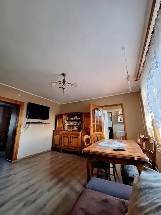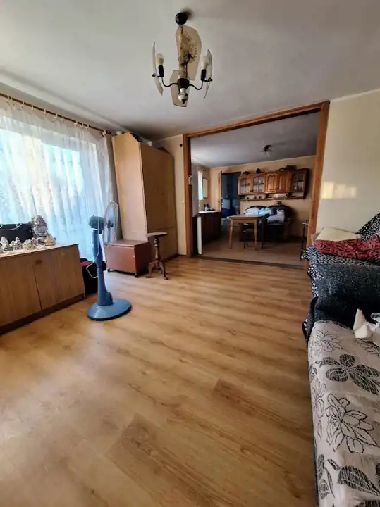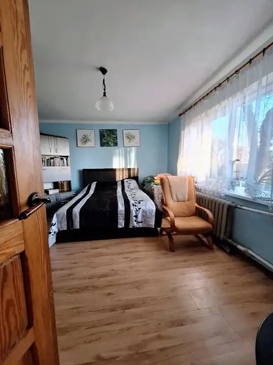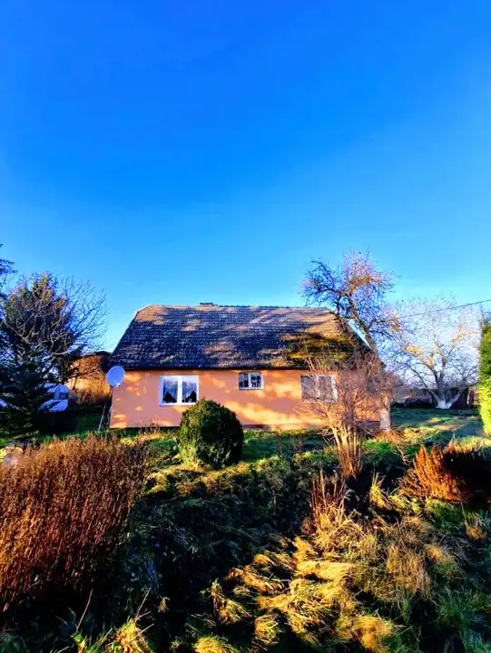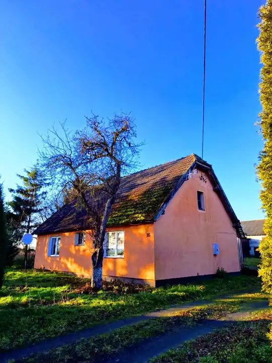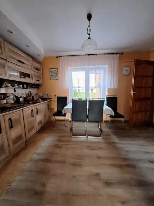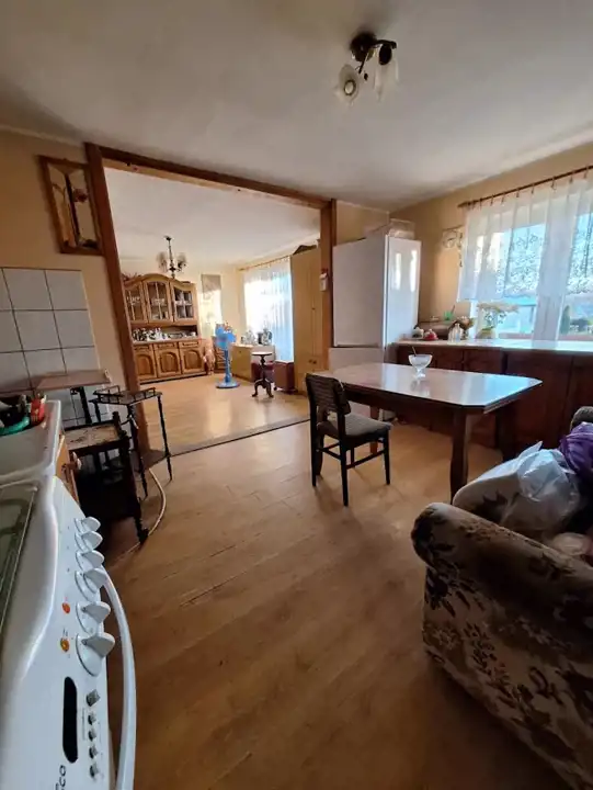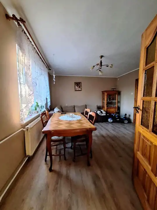- Dom około 120m2 ( 3 pokoje , kuchnia , łazienka , pomieszczenia gospodarcze plus poddasze )