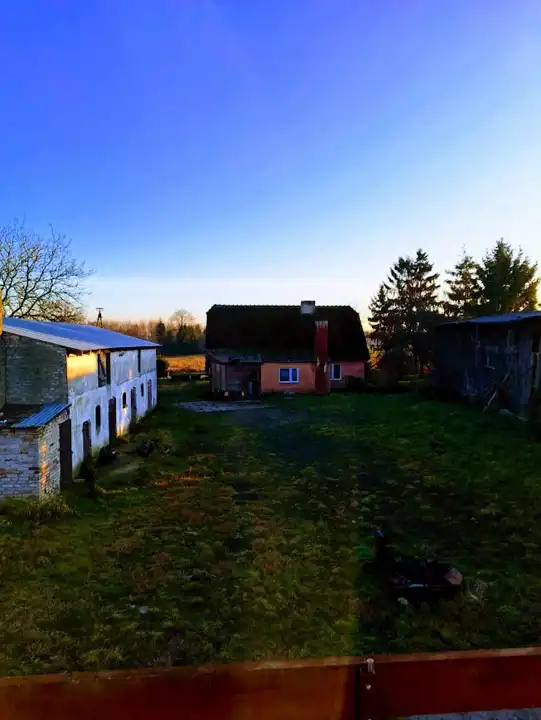 Z każdej strony pola i łąki. Dojazd utwardzoną drogą.