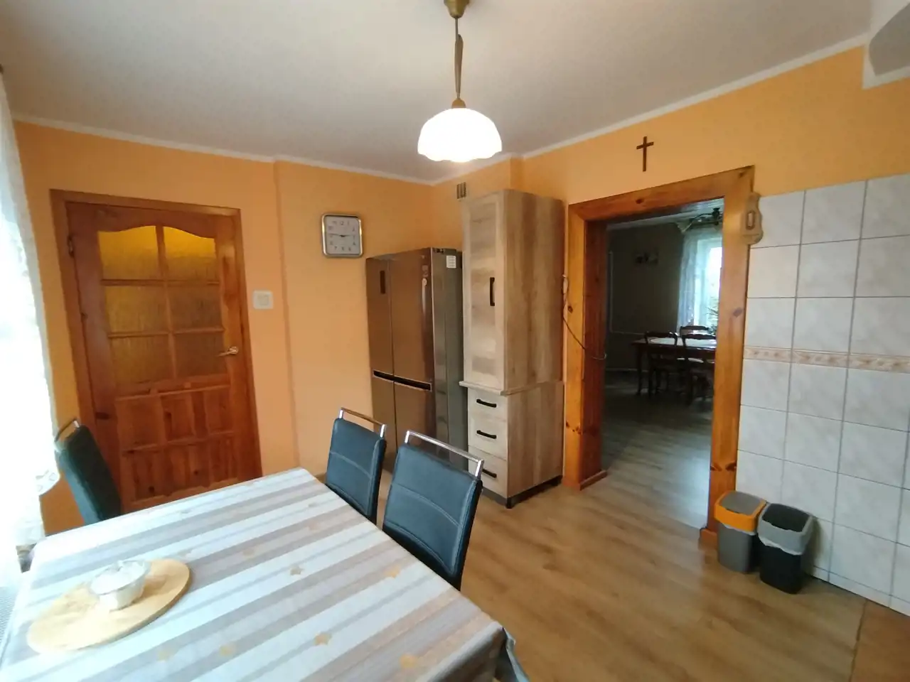 Na parterze znajduje się weranda, korytarz wejściowy, przedpokój, 3 pokoje, kuchnia, pomieszczenie gospodarcze, aktualnie użytkowana jako pralnia, łazienka wyposażona w wannę, osobne WC a także kotłownia, do której także prowadzi osobne wejście z zewnątrz budynku.