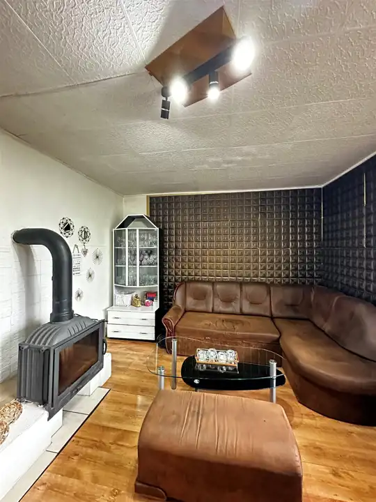 - Salon z kominkiem – idealne miejsce na rodzinne wieczory i spotkania z przyjaciółmi