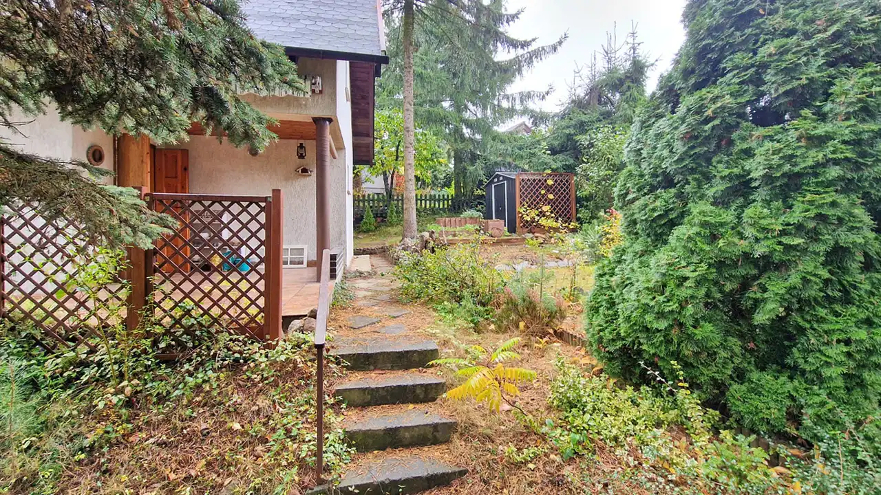 Ogród zagospodarowany oryginalną roślinnością /miłorzęb, metasekwoje, rododendrony, trzmielnica kolorowa, klony japońskie i inne. Dodatkowo na terenie działki znajduje się metalowy domek – narzędziownia /2023/, wys. 2,10 m, powierzchni 4,7 m2.