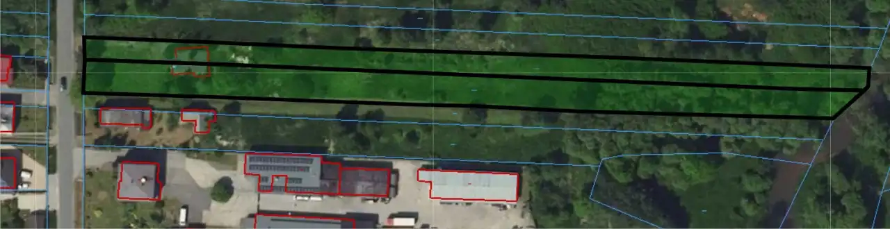 - Działka częściowo zagospodarowana, pochyła, prostokąt