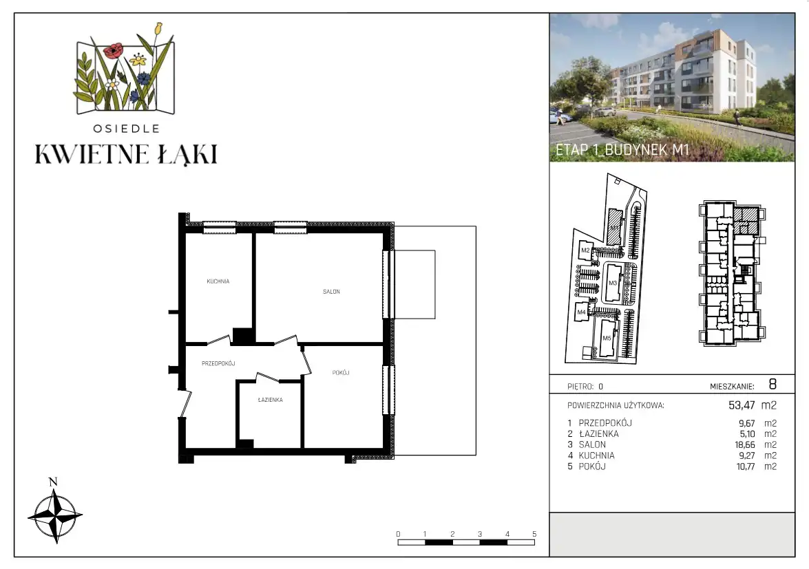 - Charakterystyka mieszkania 53.47 m2, 2 pokoje