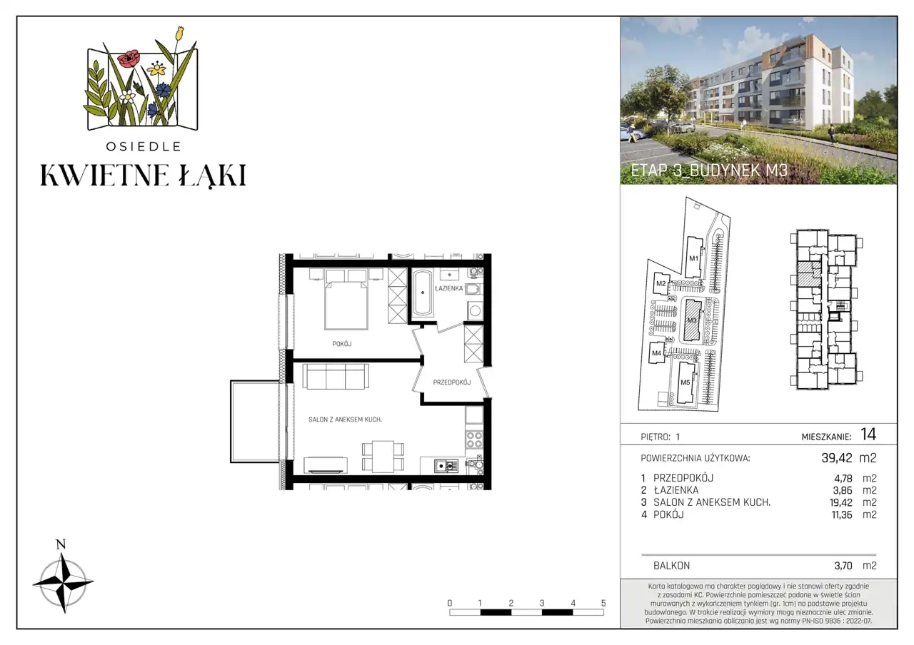 - Charakterystyka mieszkania 39.42 m2, 2 pokoje