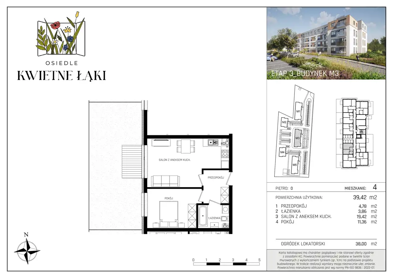 - Charakterystyka mieszkania 39.42 m2, 2 pokoje
