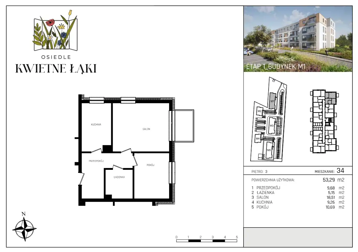 - Charakterystyka mieszkania 53.29 m2, 2 pokoje