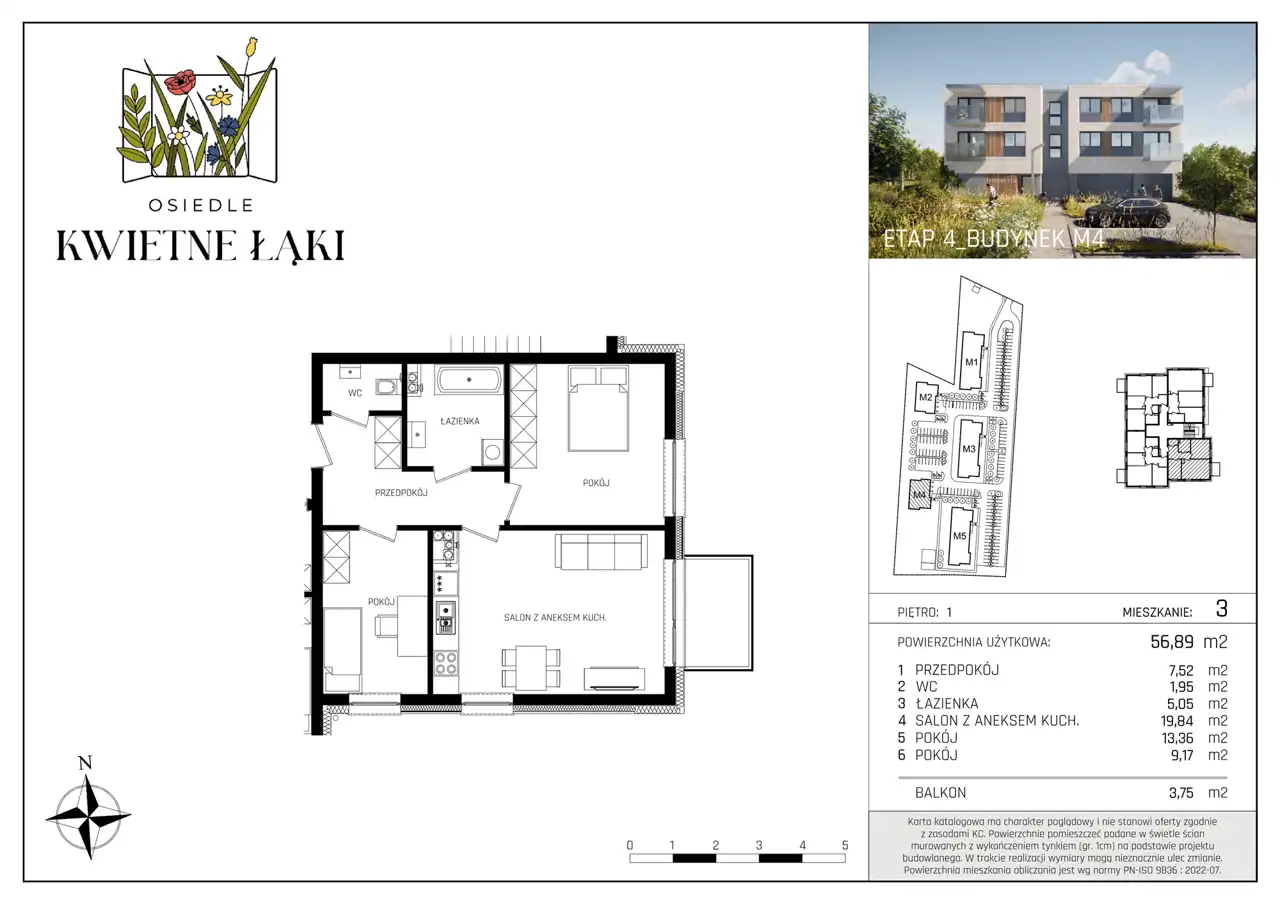 WKRÓTCE W SPRZEDAŻY! Mieszkanie 56,89 m kw. z oknami od strony południowo wschodniej. Salon z aneksem kuchennym, dwie sypialnie i łazienka z oddzielnym WC w wygodnym ustawieniu. Przestronny, ustawny przedpokój. Balkon 3,75 m kw.