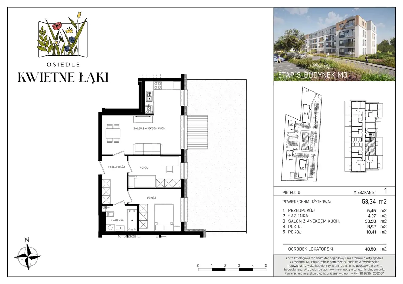 - Charakterystyka mieszkania 53.34 m2, 3 pokoje